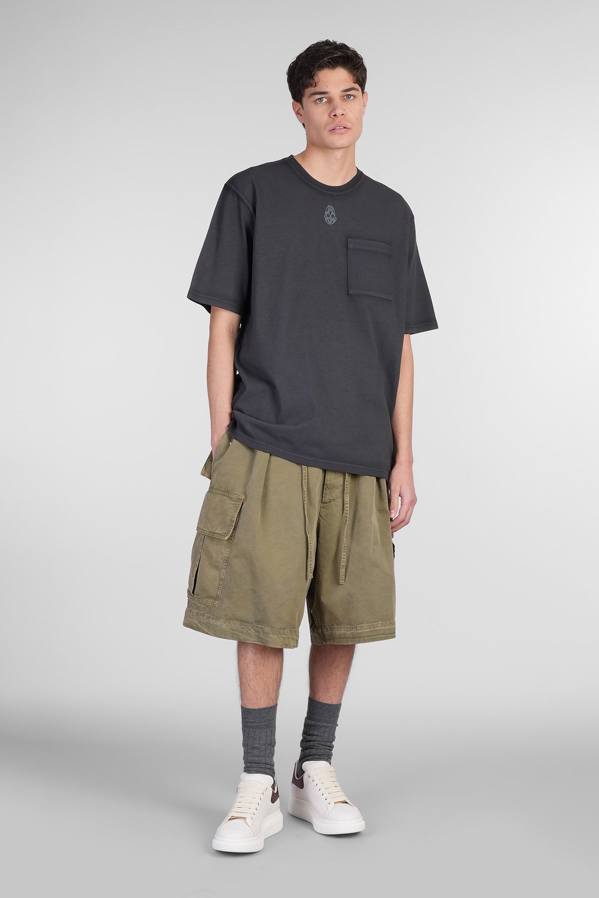 Crewneck T-shirt by Alexander Mcqueen in black. Tone-on-tone reversed Skull embroidery and patch pocket on the front.