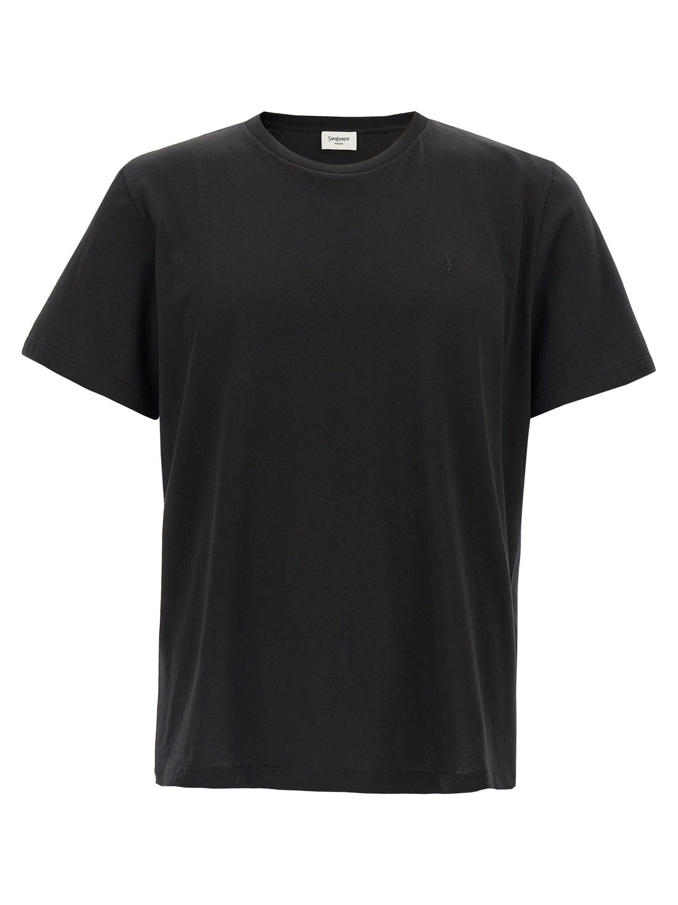 Crewneck cotton T-shirt with tone-on-tone YSL embroidery