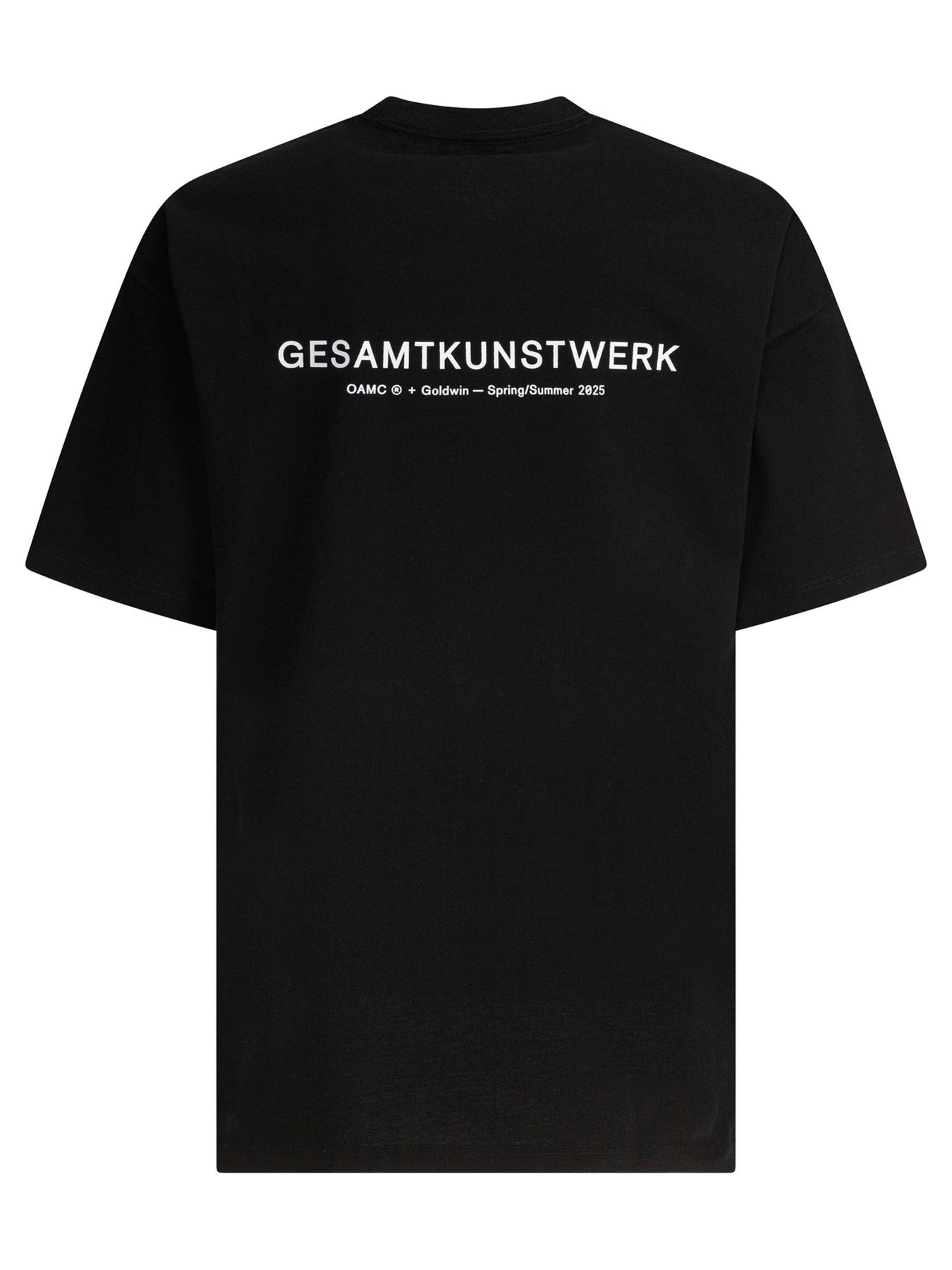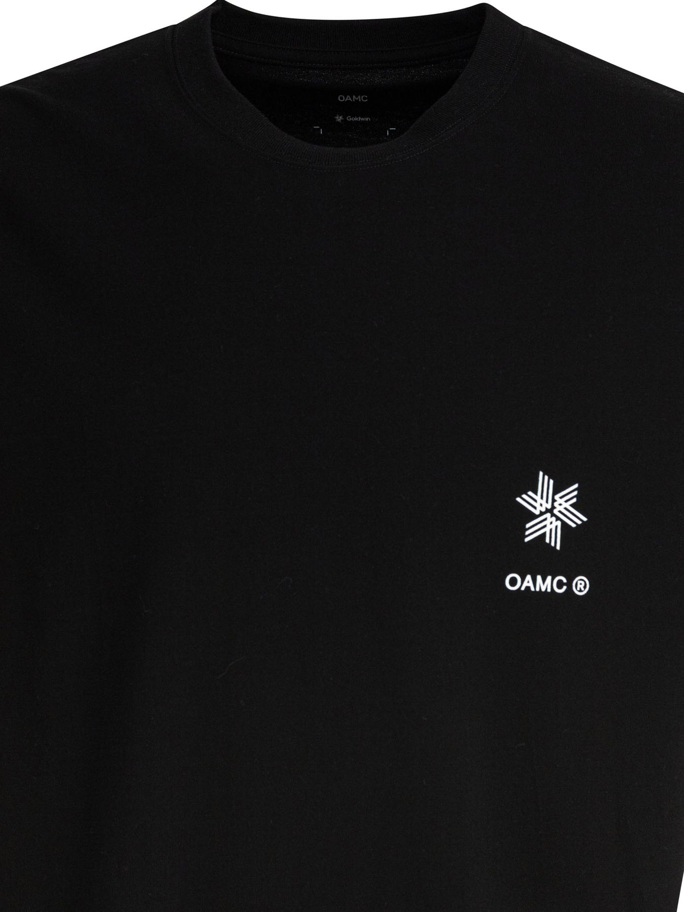 The "OAMC Goldwin" T-shirt represents the meeting of style and art, perfect for the detail-oriented modern man. With a relaxed fit, this T-shirt is ideal for a casual yet sophisticated look, thanks to the unique artwork on the back. Made of fine organic cotton jersey, it ensures comfort and sophistication for any occasion. || - Crew neck - Printed logo - Back print - Short sleeves - Relaxed fit || Pair the "OAMC Goldwin" T-shirt with dark jeans and sneakers for a relaxed, contemporary look. Add a leather jacket for a bold touch or a neutral sweatshirt for a more casual outfit.
