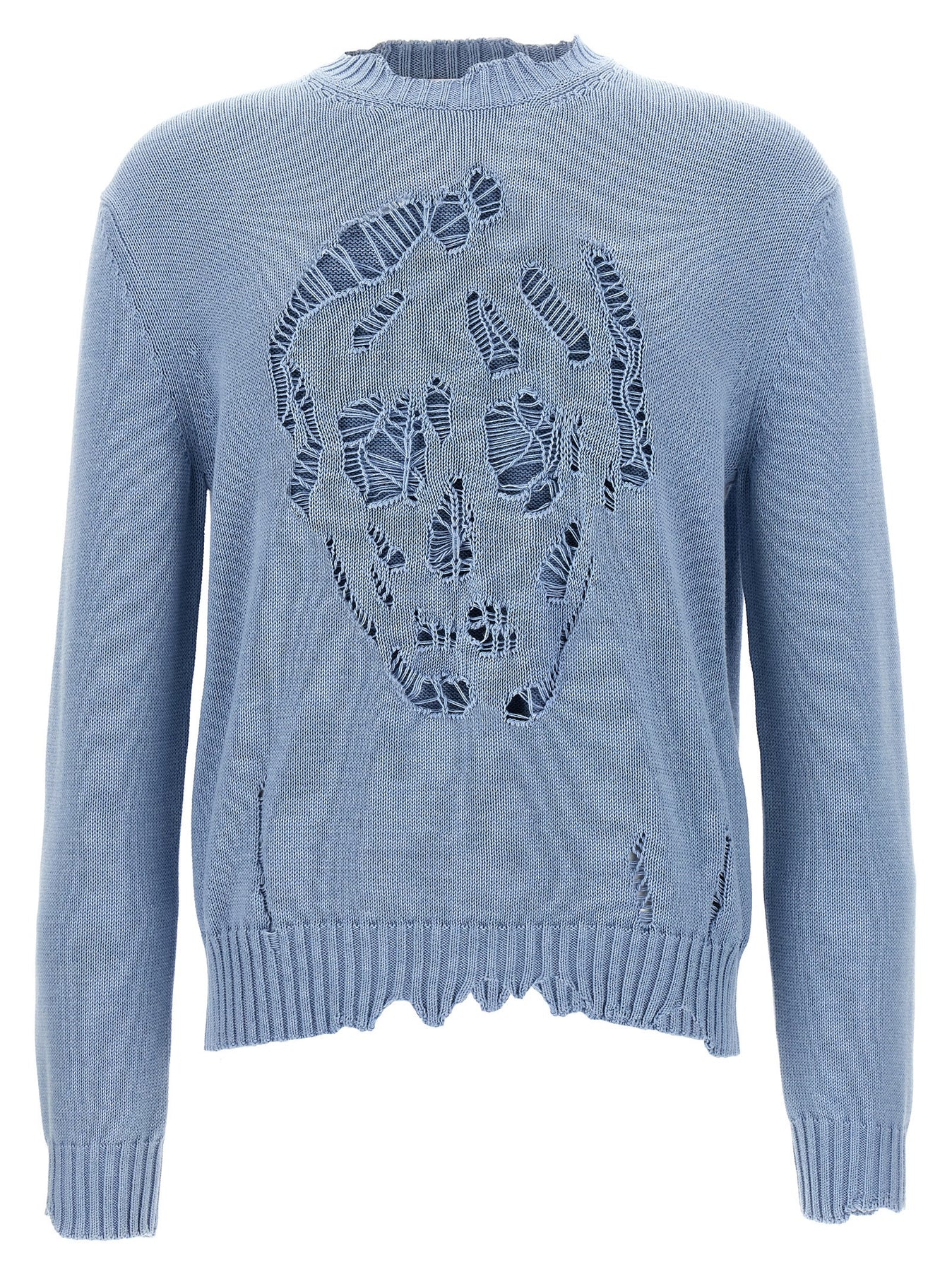 Used-effect cotton sweater with front Skull cut-out detail, crew neck, long cuffed sleeves.