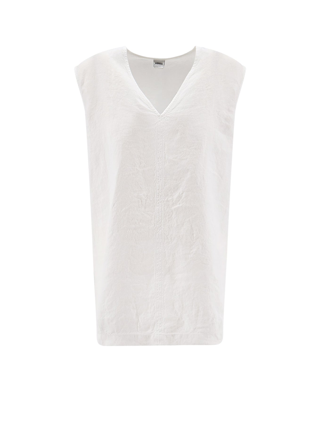 V-neckline Sleeveless Side slits Oversize Made in Italy 100% linen SKU: 5675D06485072