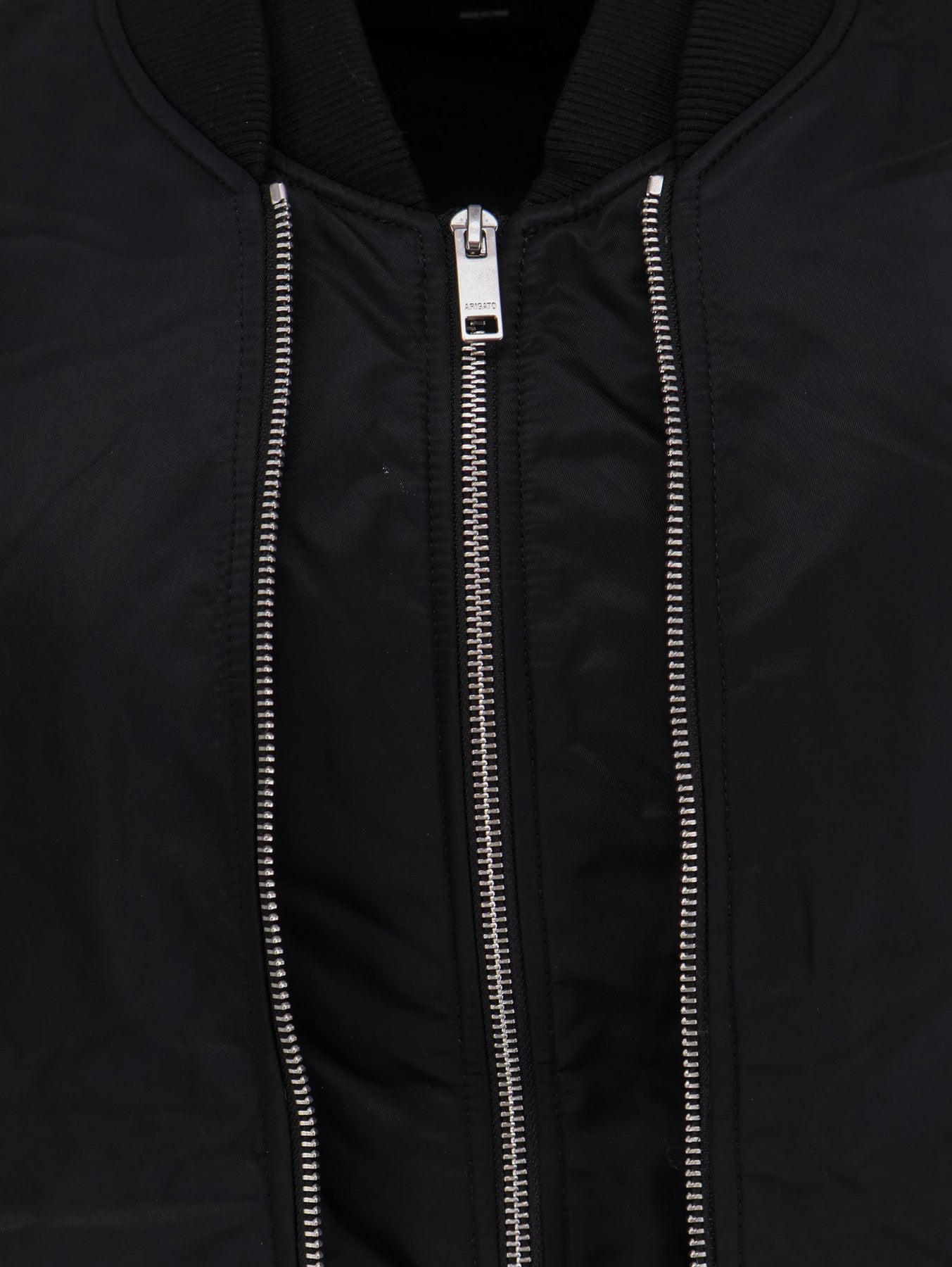 Double zip closure Front welt pockets with button Ribbed trim Lined 100% polyamide Lining: 56% polyester, 44% viscose SKU: A3147002BLACK