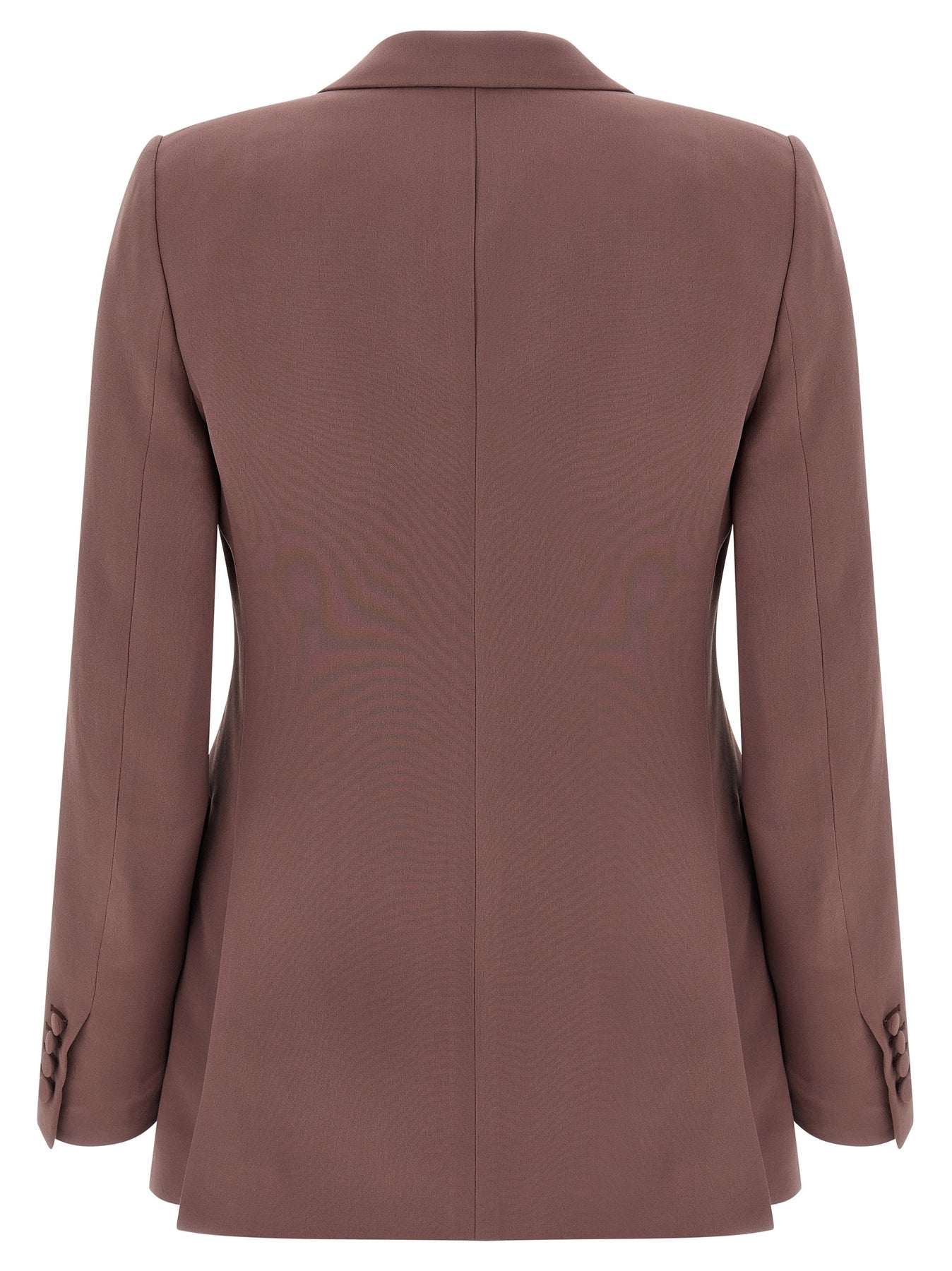 'Flavia' double-breasted silk blazer with front button closure, peak lapels, breast pocket, flap pockets, structured shoulder strap, long sleeves, side slits, cupro lining.
