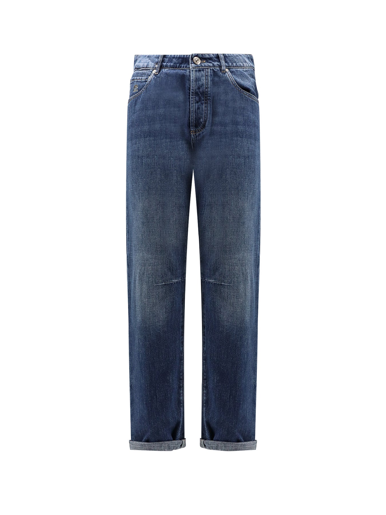 Metal button closure Five pockets Iconic logo embroidery Suede logo tag Made in Italy 100% cotton SKU: M0Z37X1290C1471
