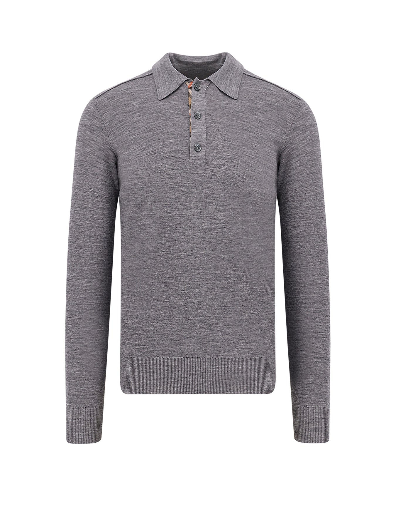 Closure with three buttons Classic pointed collar Long sleeve with cuff Ribbed profiles 50% certified wool 50% wool SKU: 8112144A1345