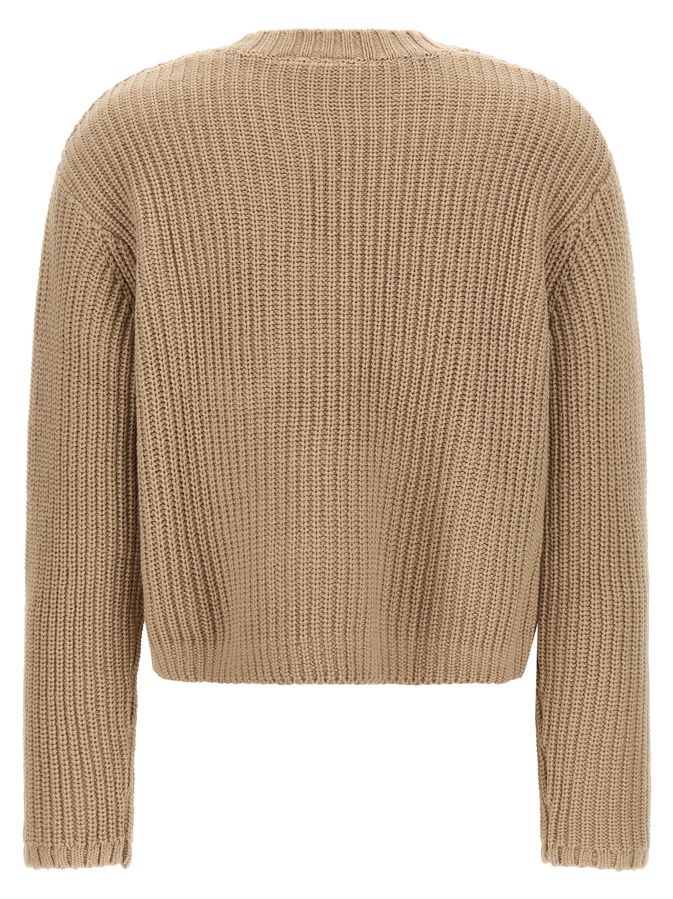 'Mira Sweater' thick-ribbed wool blend sweater, crew neck, slightly cropped pattern, front logo patch, long sleeves with cuffs.