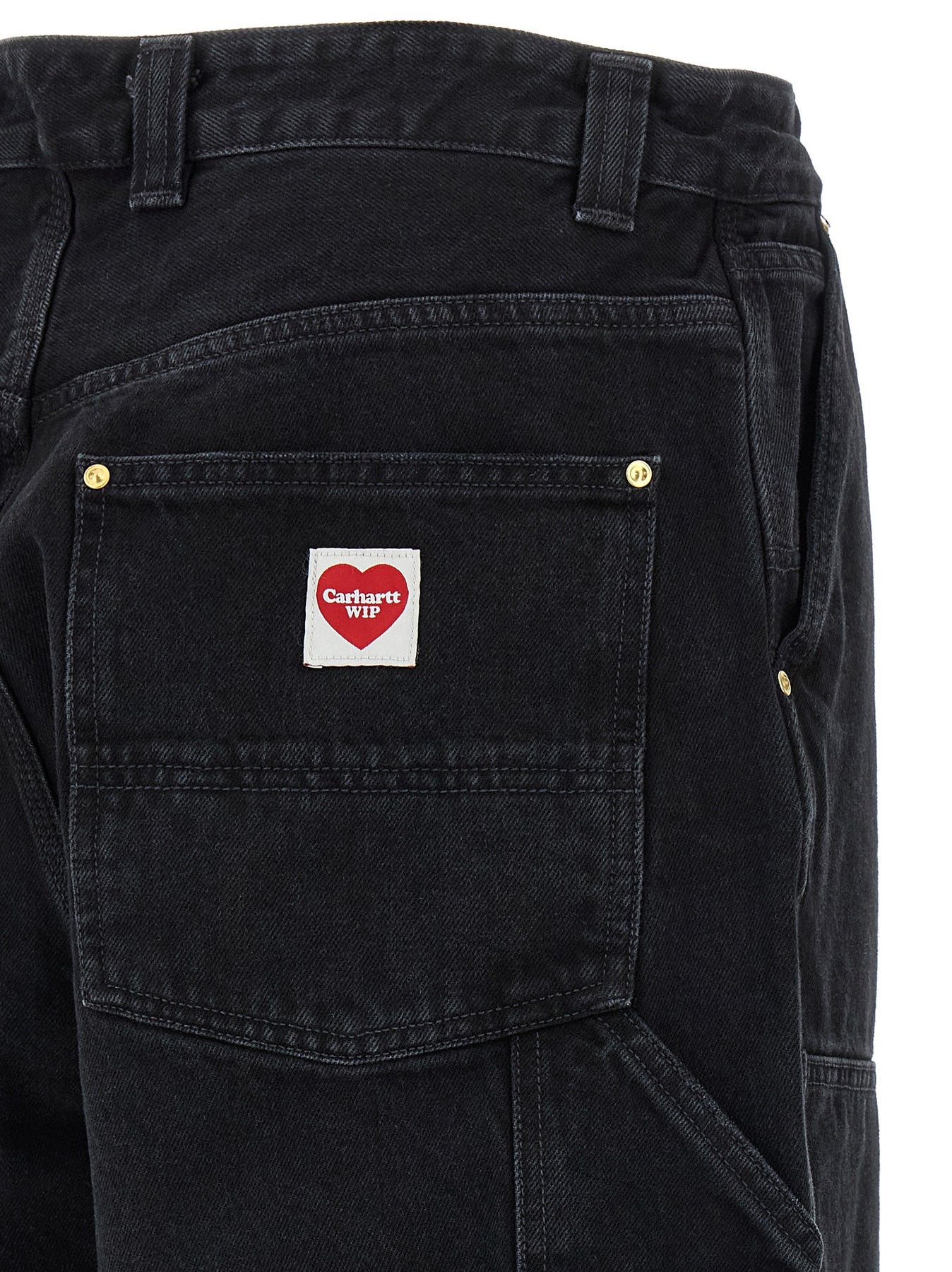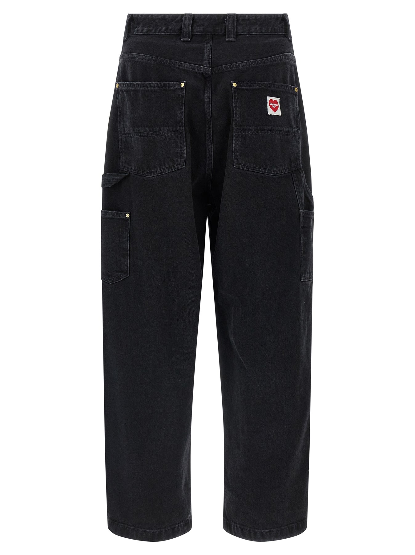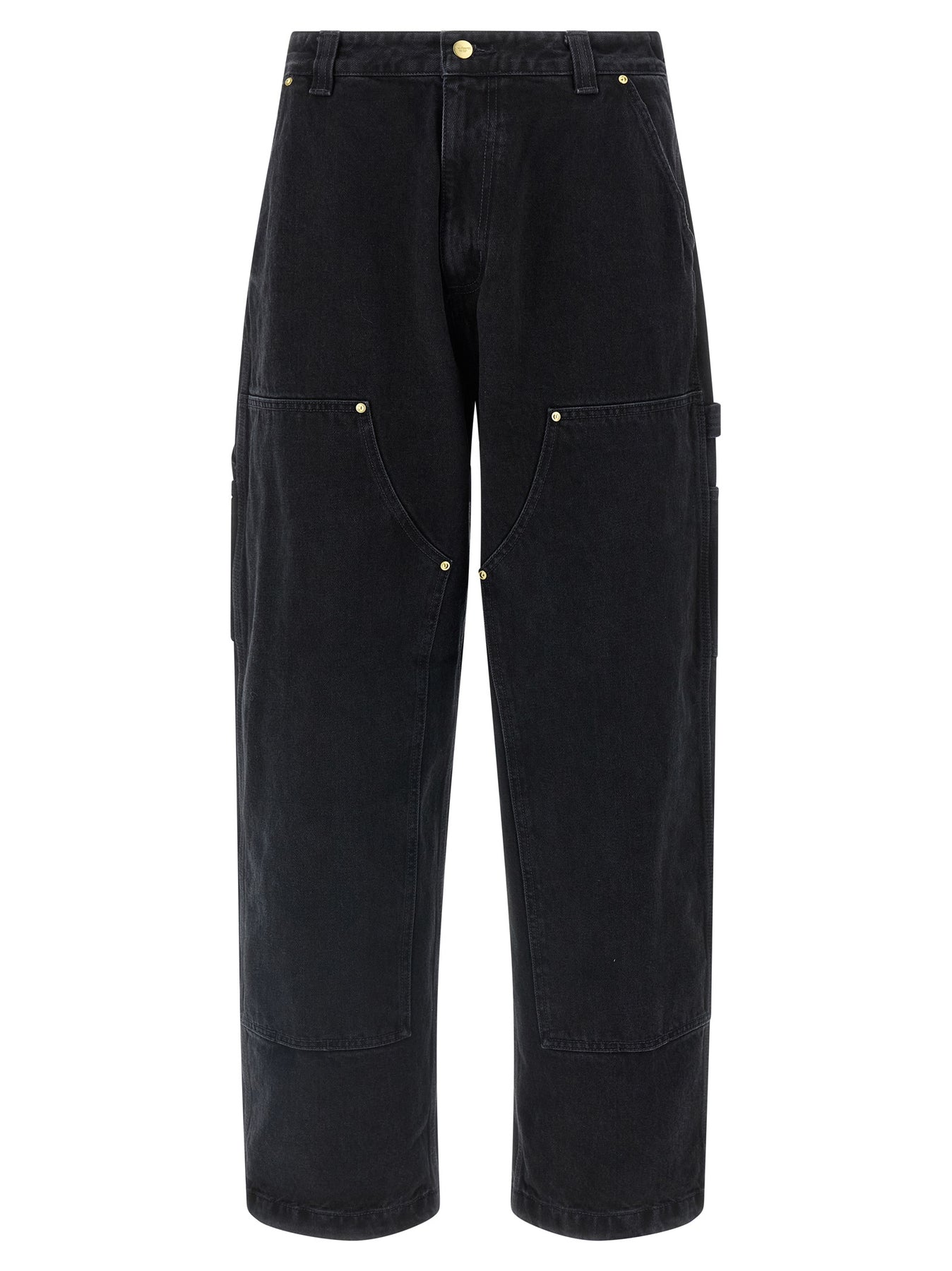 Smith stonewashed 'Nash Double Knee' cotton denim jeans with workwear model, regular waist, wide leg, front zip and button closure, five pockets, back logo patch.