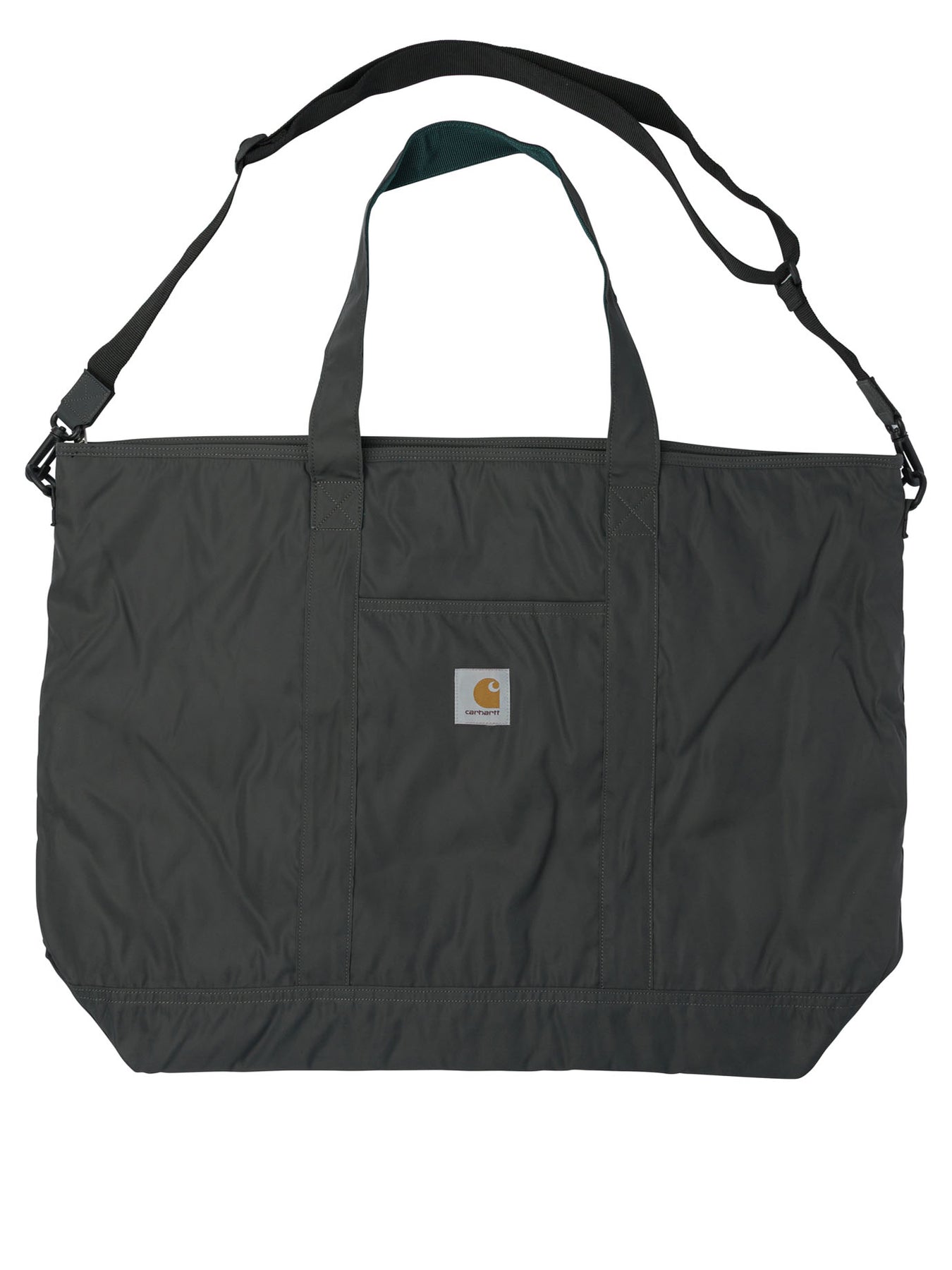 Carhartt WIP "Alumni" tote bag made of medium-weight nylon with soft texture and rectangular silhouette. Contrasting quilted interior lining. Zippered main opening. Two fabric top handles, adjustable and removable shoulder strap for shoulder use. Front pouch pocket and inside pouch pocket. Graphic embroidery on back and square label affixed to front. || - Medium weight nylon - Contrasting quilted lining - Zippered main compartment - Front pouch pocket - Inside pouch pocket - Adjustable and removable shoulder strap - Two top handles - Back graphic embroidery - Square front label