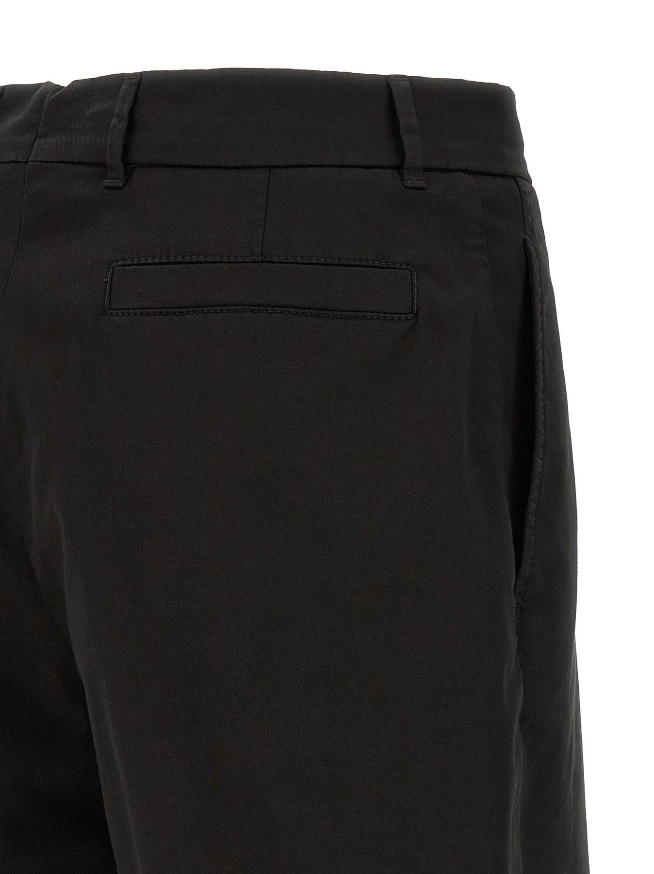 Garment-dyed American Pima cotton gabardine bermudas, front zip and button closure, pockets.