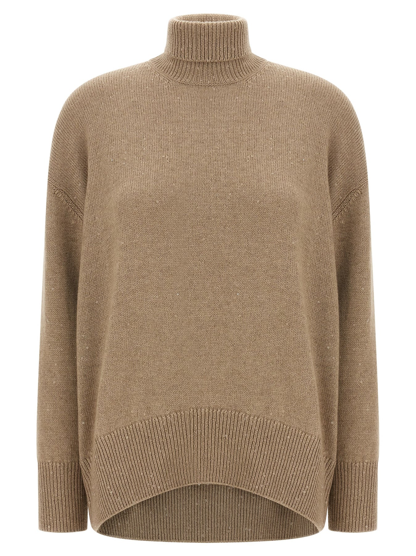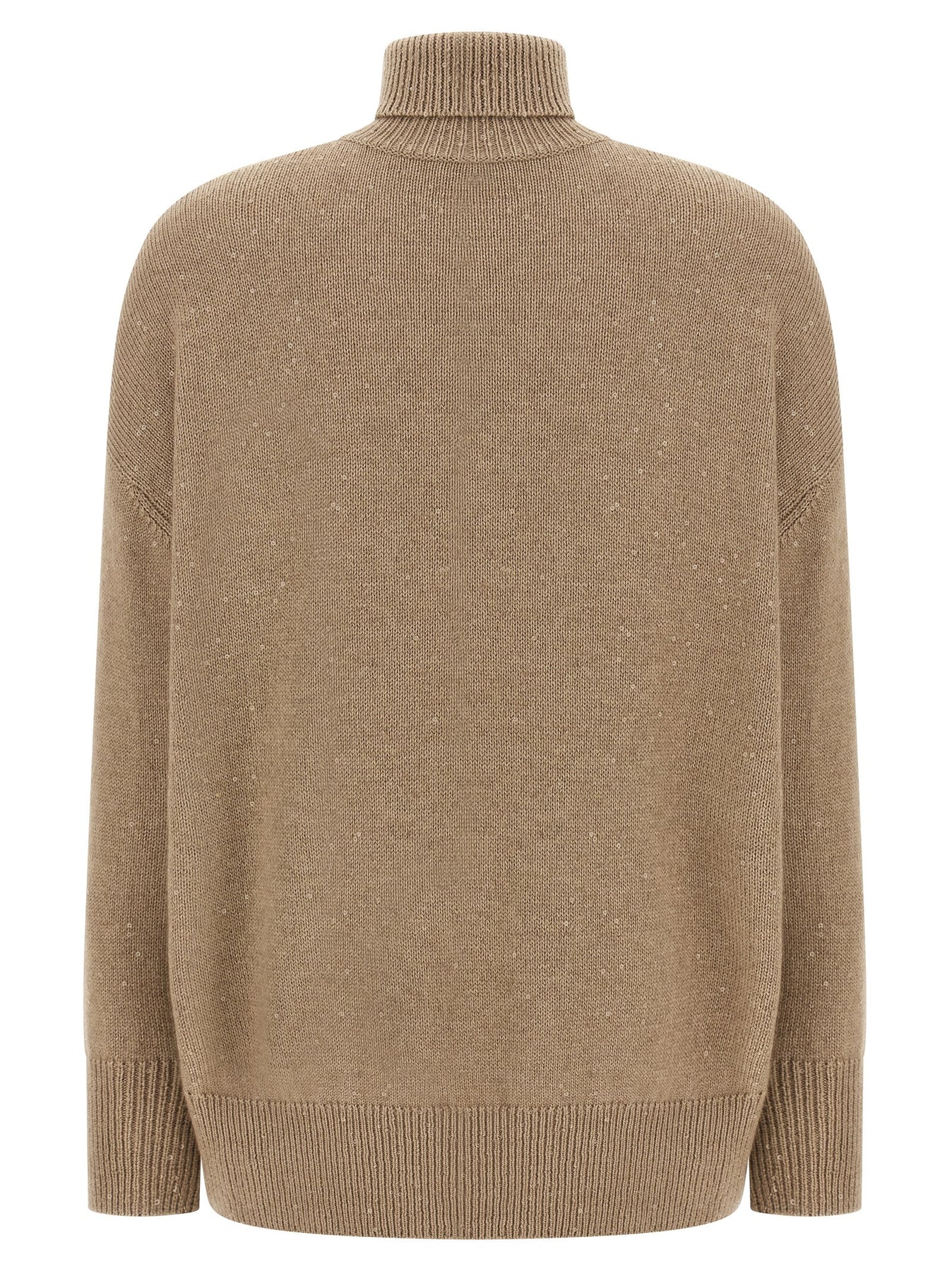 Cashmere and silk sweater with all-over sequin appliqué, high neck, long sleeves with cuffs and dropped shoulders.