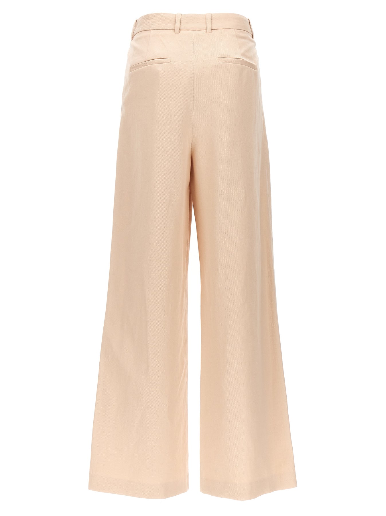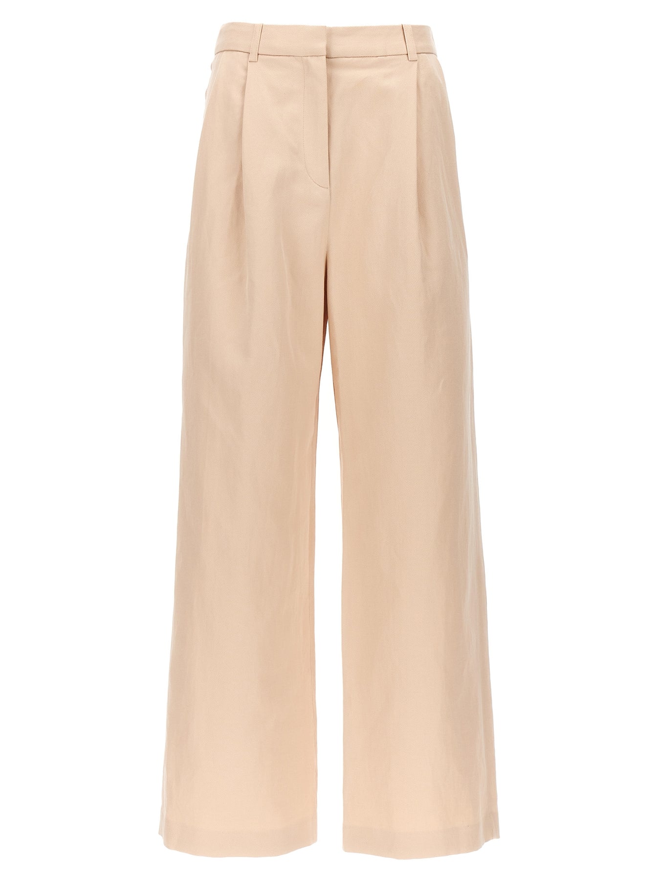 'Idai' cotton and linen blend pants, wide leg with pleats, pockets, zipper, hook and button closure.
