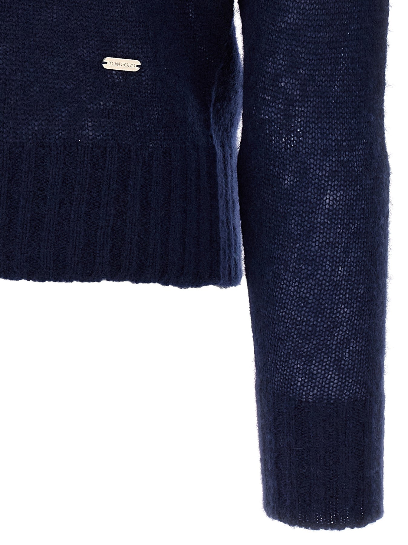 Cashmere and silk blend polo shirt with collar and V-neck, metal tag with front engraved logo, and long sleeves.