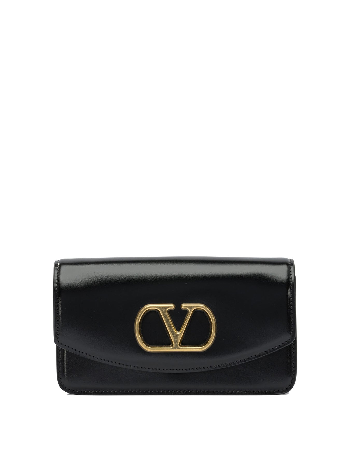 Valentino Garavani's "Vain" clutch presents itself as a stylish accessory ideal for women who seek elegance and functionality in a single object. This model represents a harmonious balance between sophisticated design and practicality, made of shiny calfskin and featuring distinctive details that enhance the brand's identity. With an unmistakable aesthetic, it is distinguished by its ability to be worn either on the shoulder or cross-body, thanks to its removable shoulder strap and chain, making it suitable for a variety of occasions. || - Signature VLogo - Antique gold finish - Magnetic closure with VLogo - Nappa leather lining with interior flat pocket