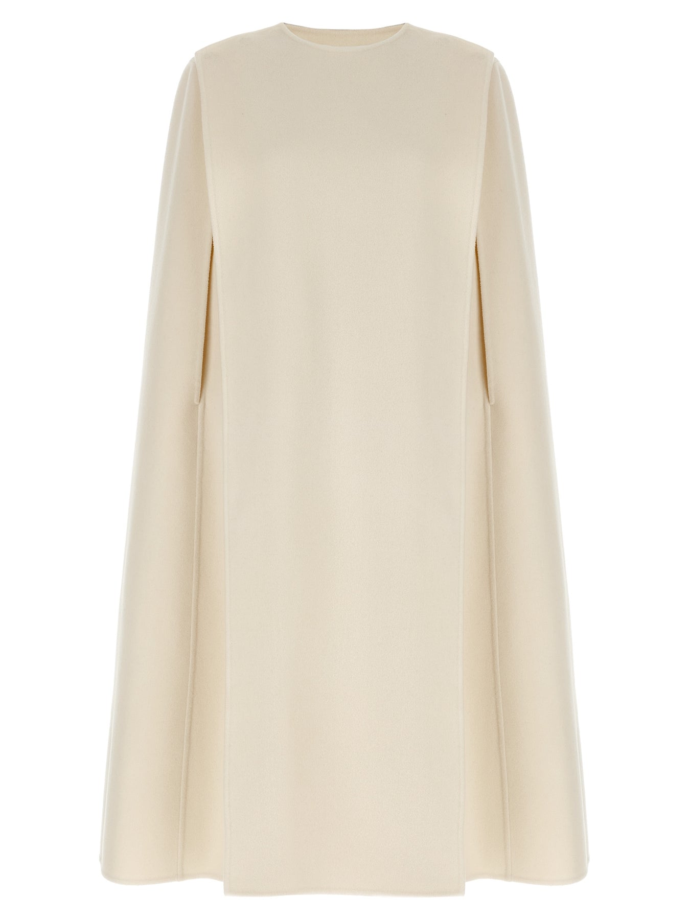 Virgin wool blend crewneck cape with wallet style with front snap button closure and a slit to let your arms through.