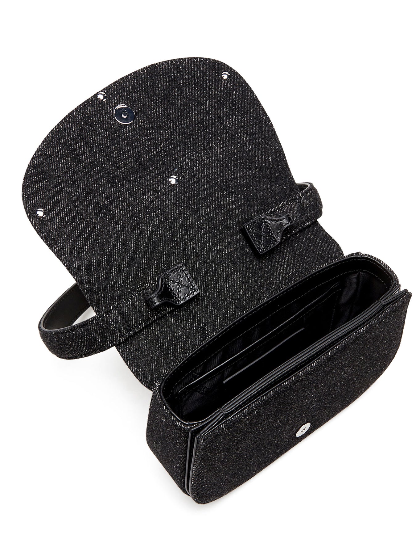 Removable and adjustable leather handle and shoulder strap Flap and button closure Cut-out Oval-D logo Two external flat pockets and one internal flat pocket 90% cotton, 10% leather Lining: leather W: 20 cm x H: 14 cm x D: 5 cm SKU: X08396P6901T8013