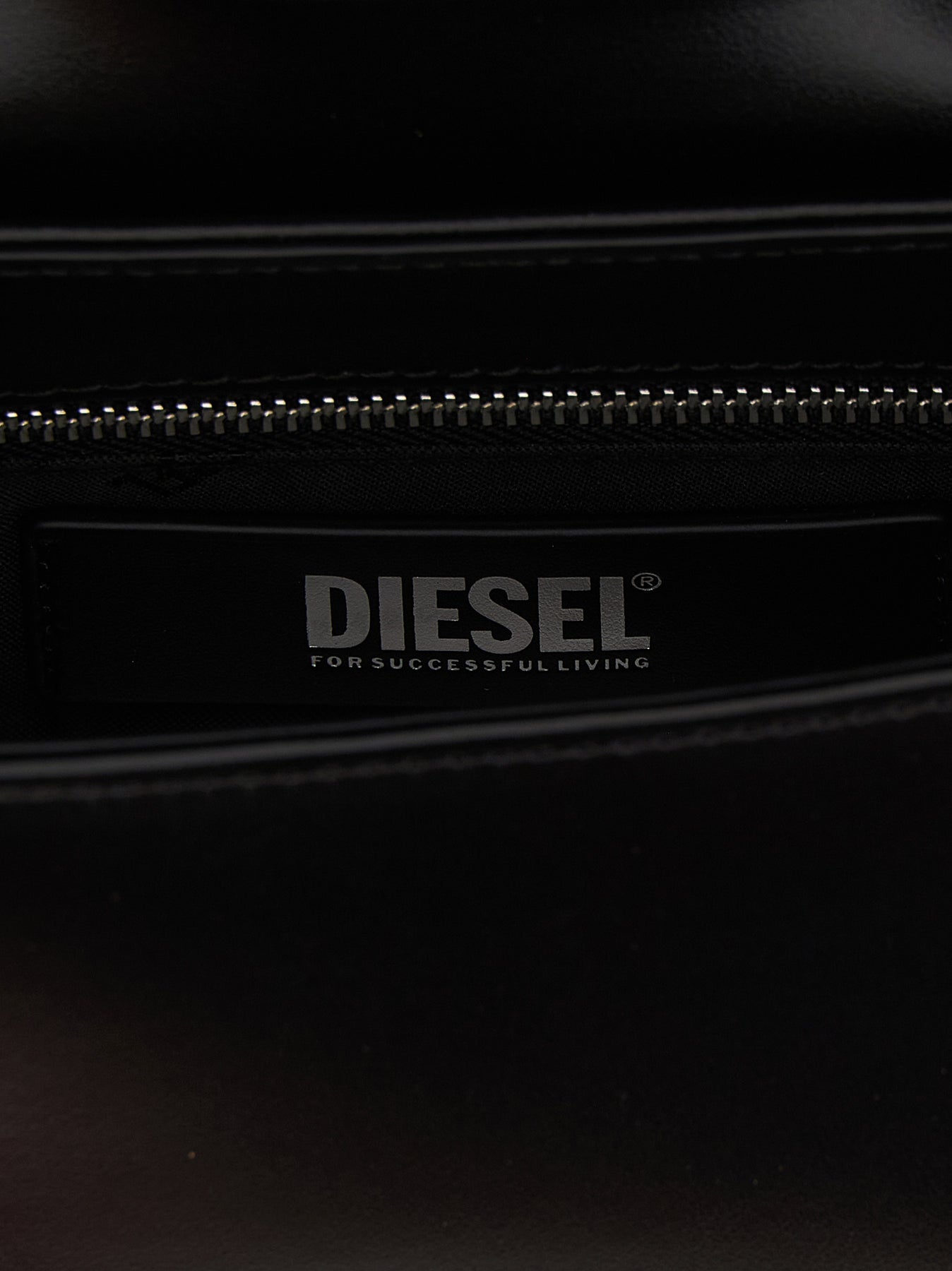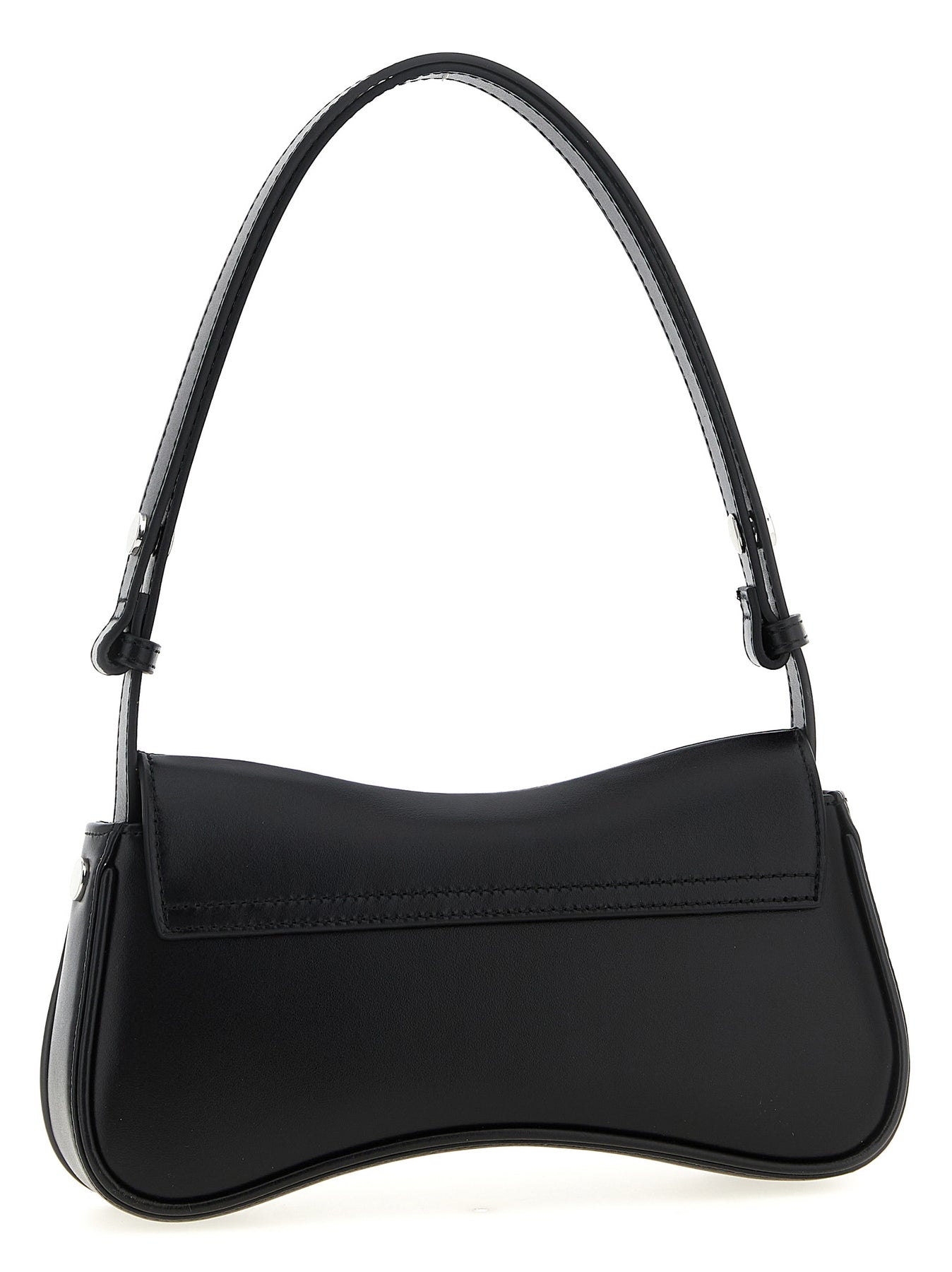 'Play clutch' leather shoulder bag, magnetic flap closure, metal logo appliqué, adjustable handle