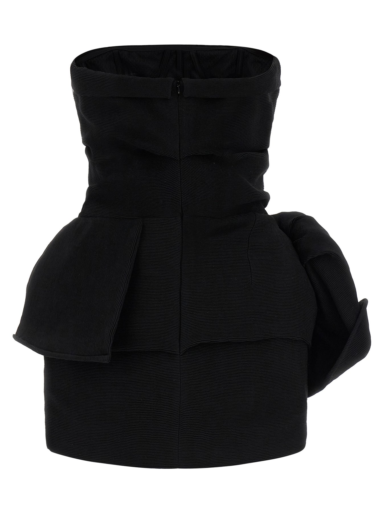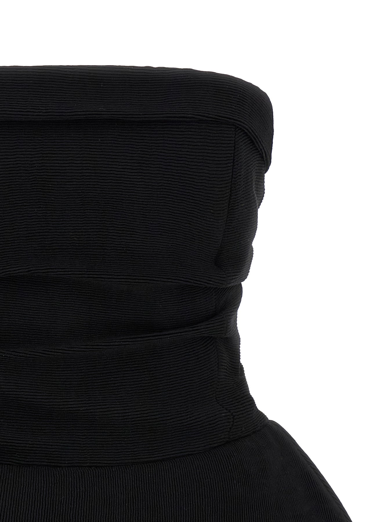 'RE26 Dress 01' ribbed mini dress, off-shoulder model with inner lace corset with back hooks, padding in the bust, draping pattern, back closure with hidden zip.