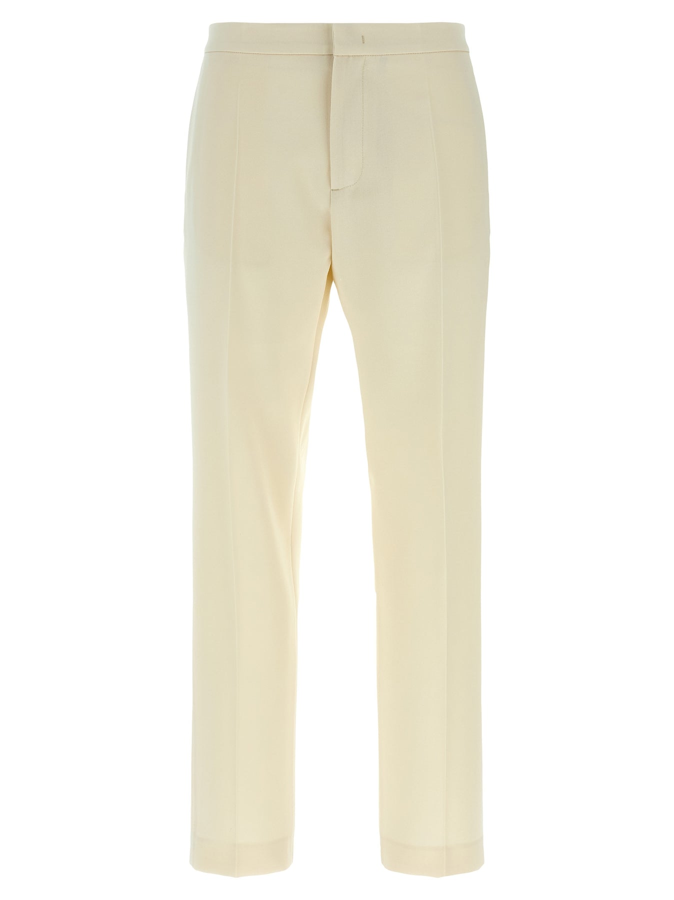 Viscose blend trousers, back jewel detail, straight leg, stretched pleat, zip and front hook closure, pockets.