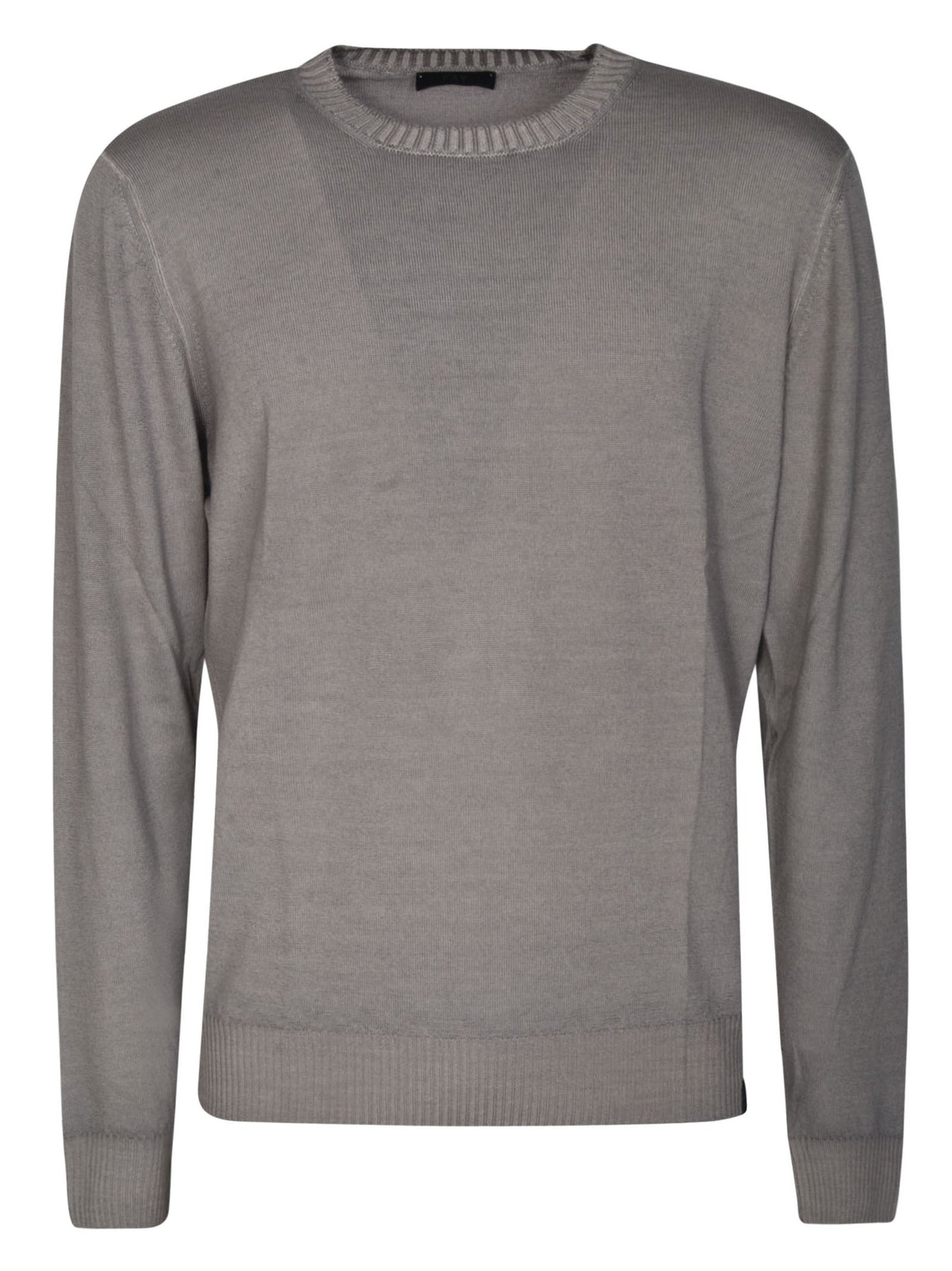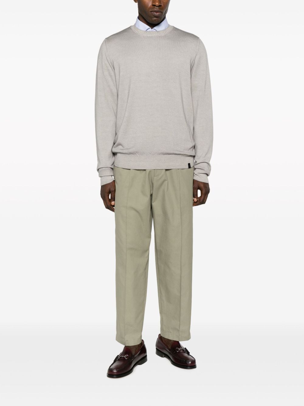 light grey virgin wool logo tag crew neck long sleeves ribbed cuffs and hem straight hem