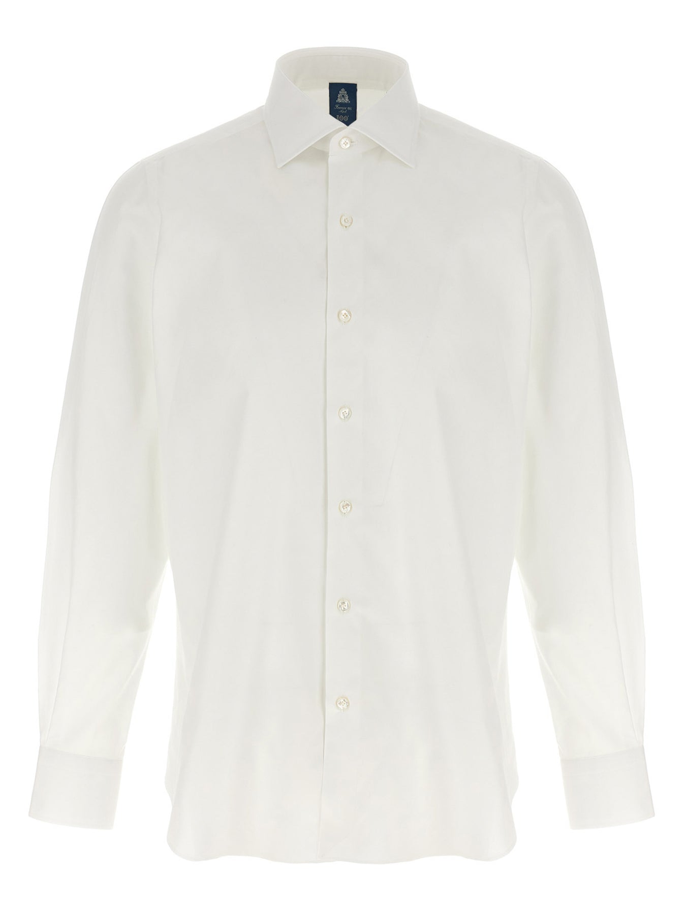 'Napoli' cotton shirt with button closure, long cuffed sleeves, tonal satin logo detail on the side slits.