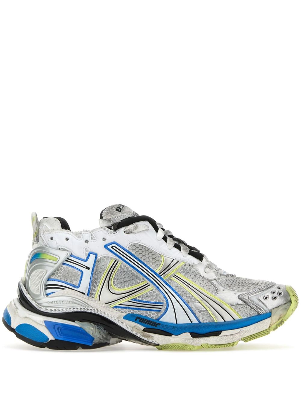 grey/multicolour colour-block panelled design mesh design embossed logo to the side logo-embroidered tongue round toe front lace-up fastening branded insole chunky rubber sole