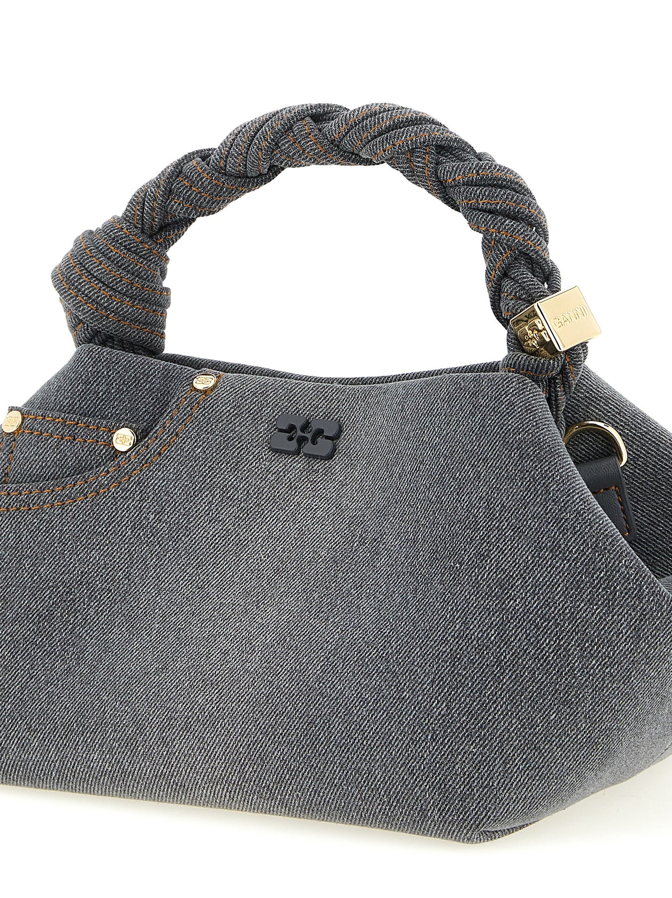 'Small Bou' cotton blend handbag with tonal metal 'GANNI Butterfly' logo on the front, back pocket with logo embroidery, fixed braided handle with knot and a metal nut, inner magnetic closure, adjustable and removable shoulder strap. SUSTAINABLE: Product made with recycled materials.