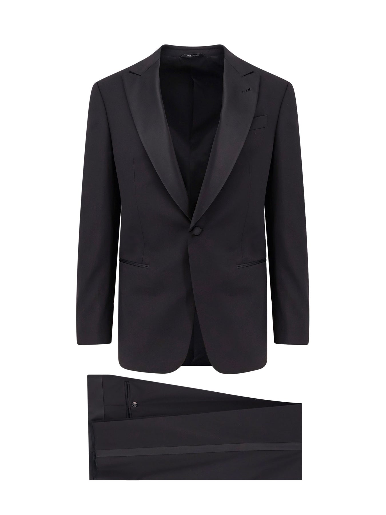 SKU: GM000045TE10047_UC001 - Blazer with peak lapel with one-button closure one breast-pocket and two frontal welt pockets trouser with hooks, button and zip closure and four welt pockets made in italy 100% virgin wool