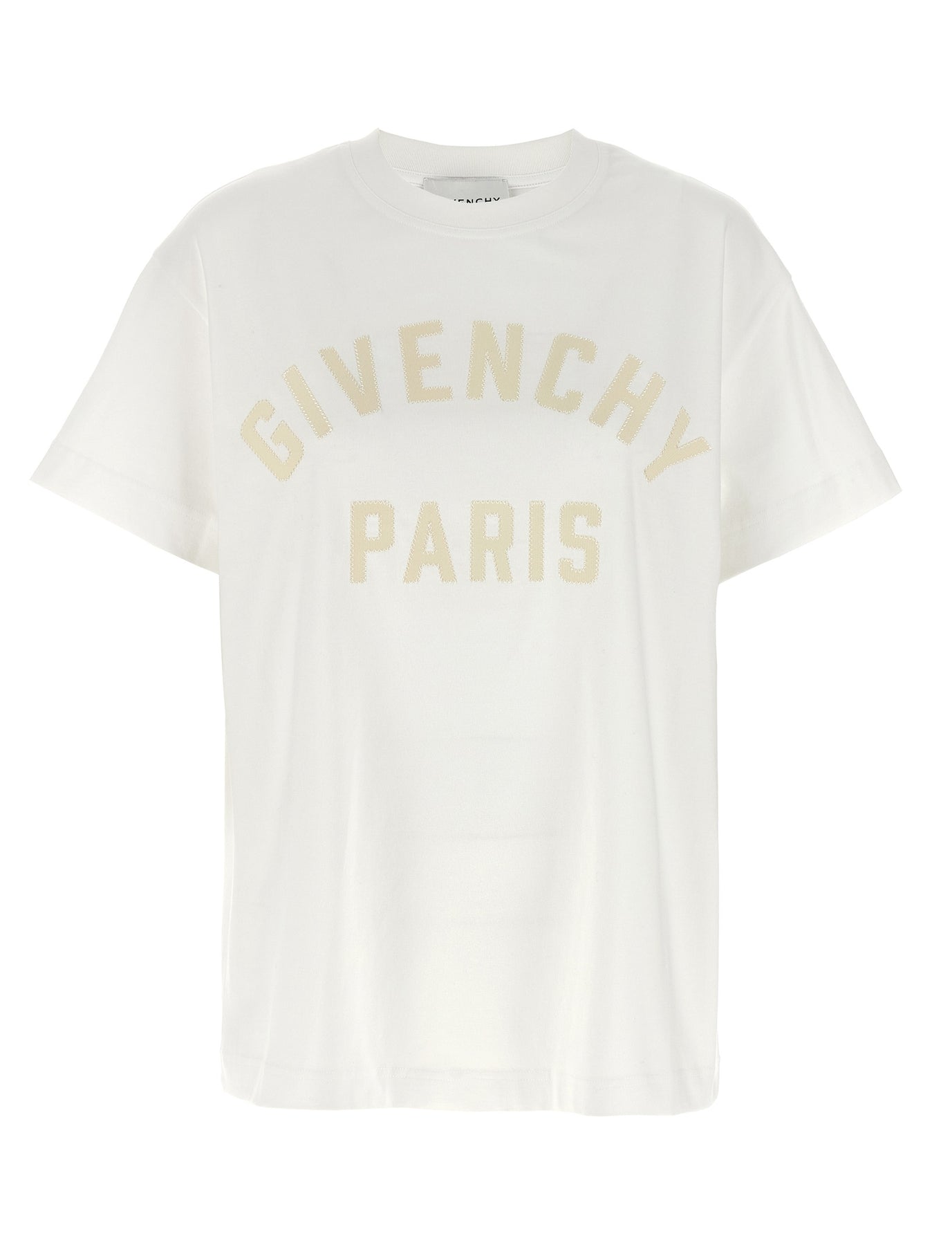 Cotton T-shirt, grosgrain 'GIVENCHY Paris' patch with front zigzag stitching, crew neck, short sleeves with dropped shoulders.