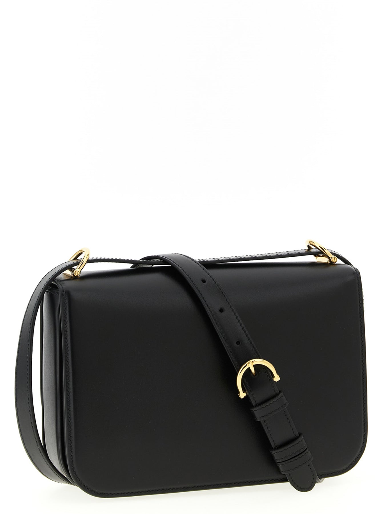 'Siena' smooth leather crossbody bag, flap with snap closure with metal half-horsebit detail, gusset model, adjustable shoulder strap.
