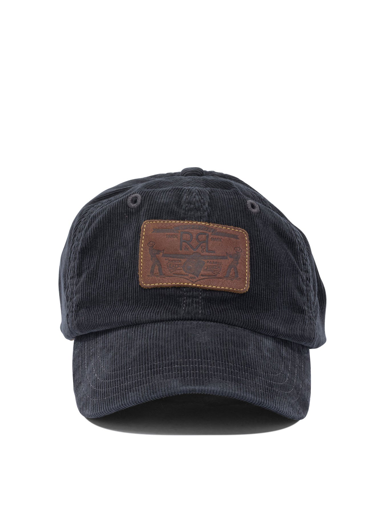 RRL by Ralph Lauren corduroy baseball cap with six-panel construction and structured silhouette. Made of fine corduroy, it incorporates a stitched visor and unique green undervisor. Internal sweat-absorbing twill sweatband. Embroidered eyelets provide ventilation. On the front, leather application engraved with Double RL Ranch logo and "Ralph Lauren" lettering. Adjustable leather tag at back with antiqued brass buckle. Lightly abraded surface. || - Six-panel construction - Stitched visor - Green undervisor - Twill sweat-absorbing band - Mesh inner front panel - Embroidered eyelets for ventilation - Leather applique with engraved logo - Adjustable leather closure with antiqued brass buckle - Lightly abraded surface for worn effect