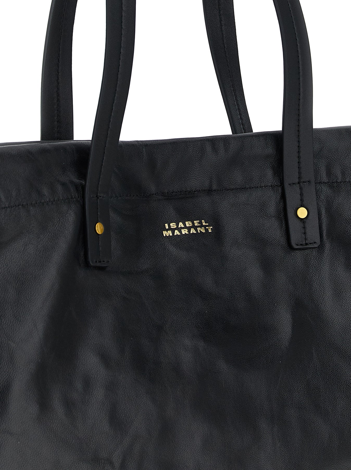 'Silven E/W' lambskin shopping bag with front embossed logo, magnetic and drawstring closure, double fixed handle.