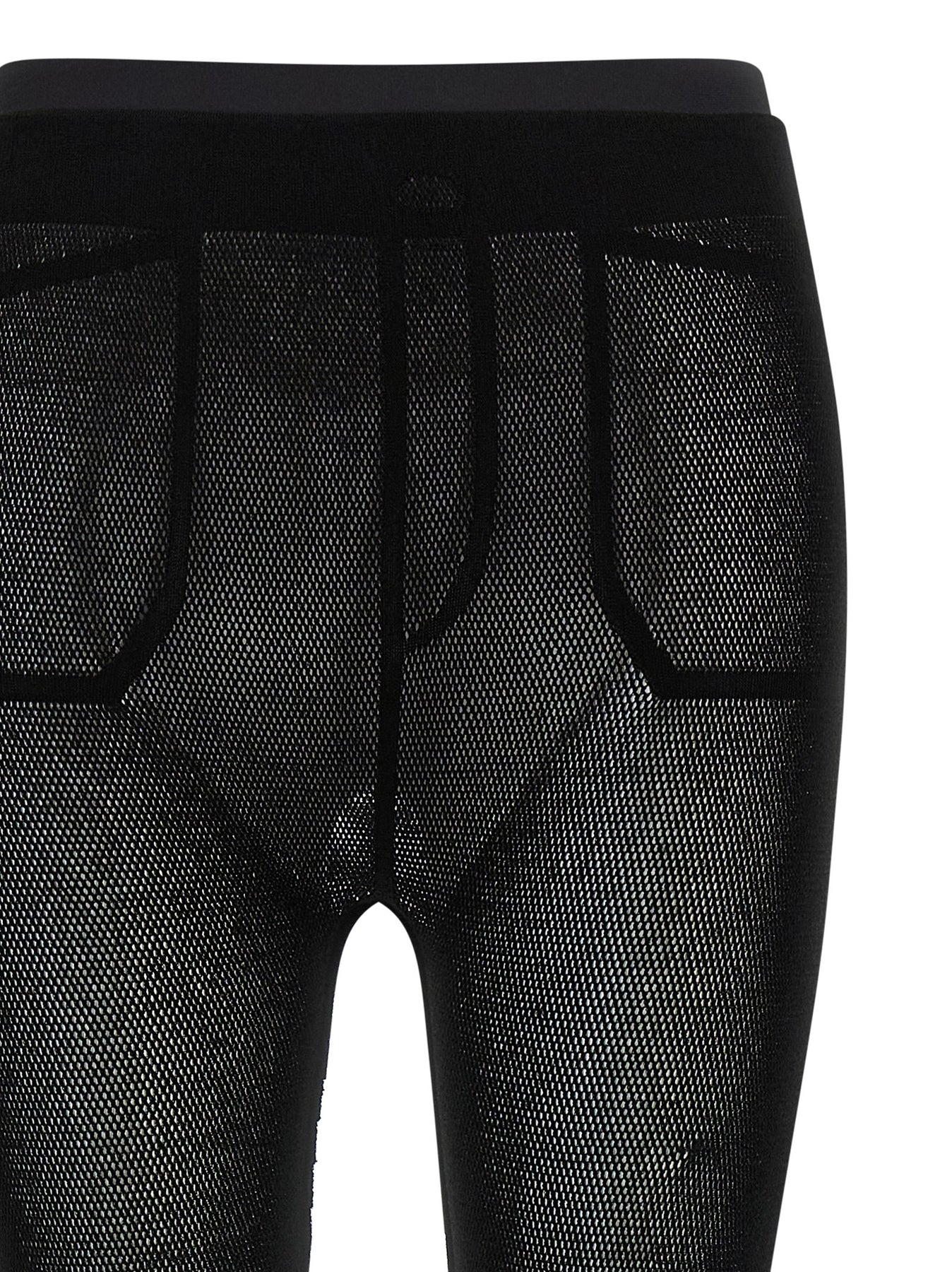 'Seen Unseen AP' leggings in A-POC mesh material, trompe-l'œil pants design, elastic waistband, fringes on the leg bottoms.