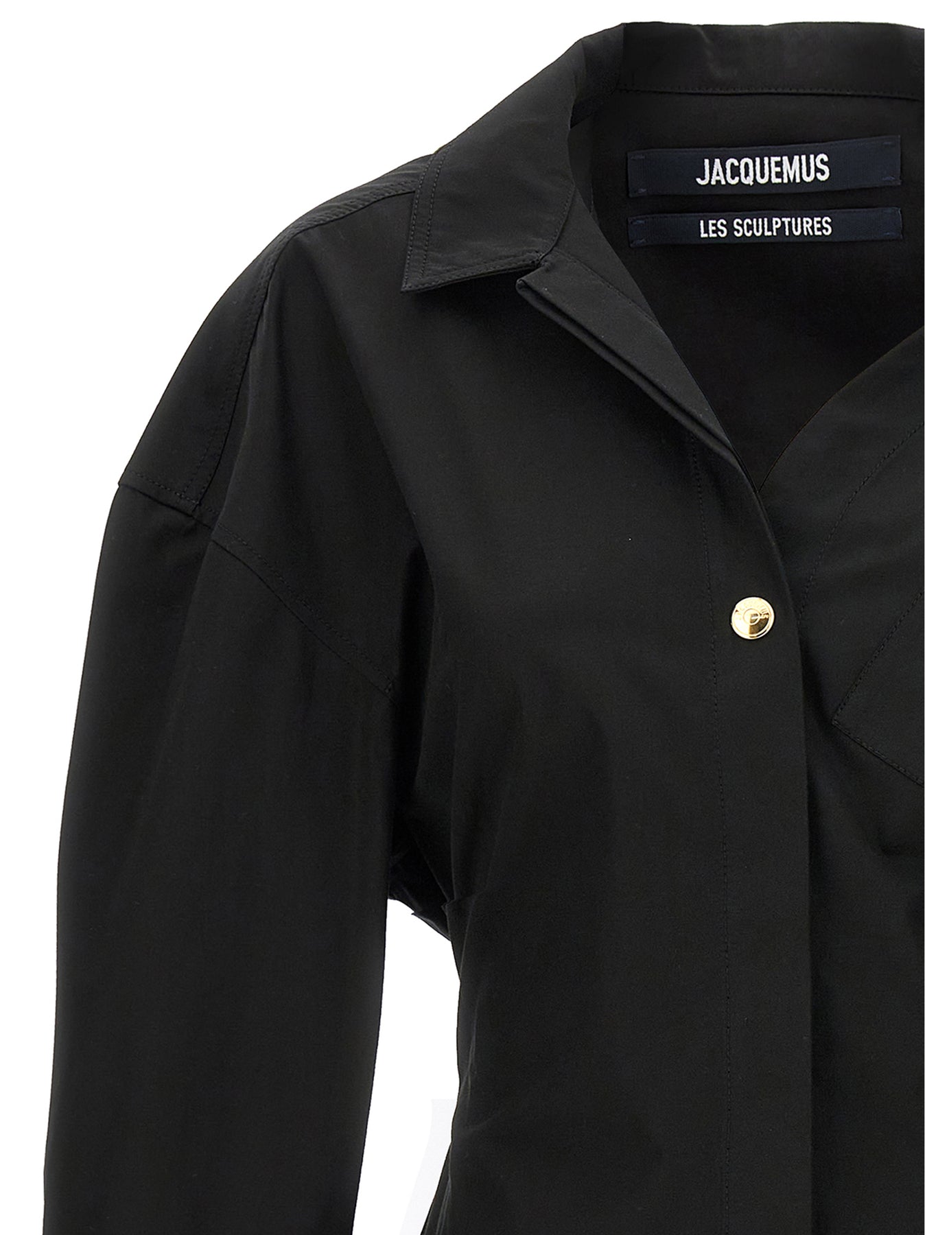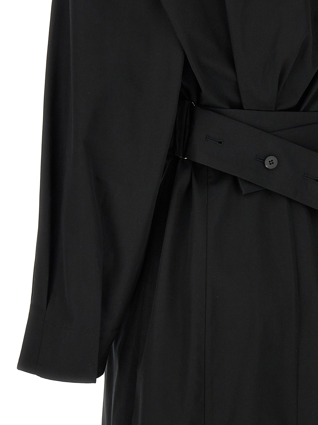 La Robe Chemise cotton dress with button closure, V-neck, long cuffed sleeves.