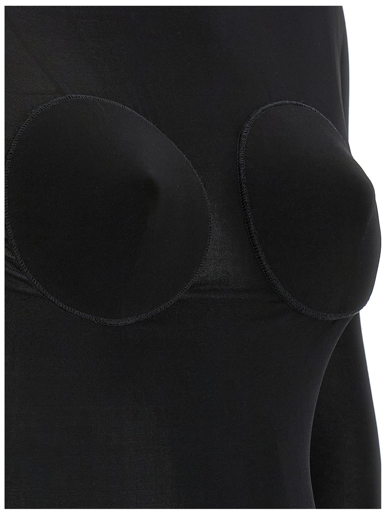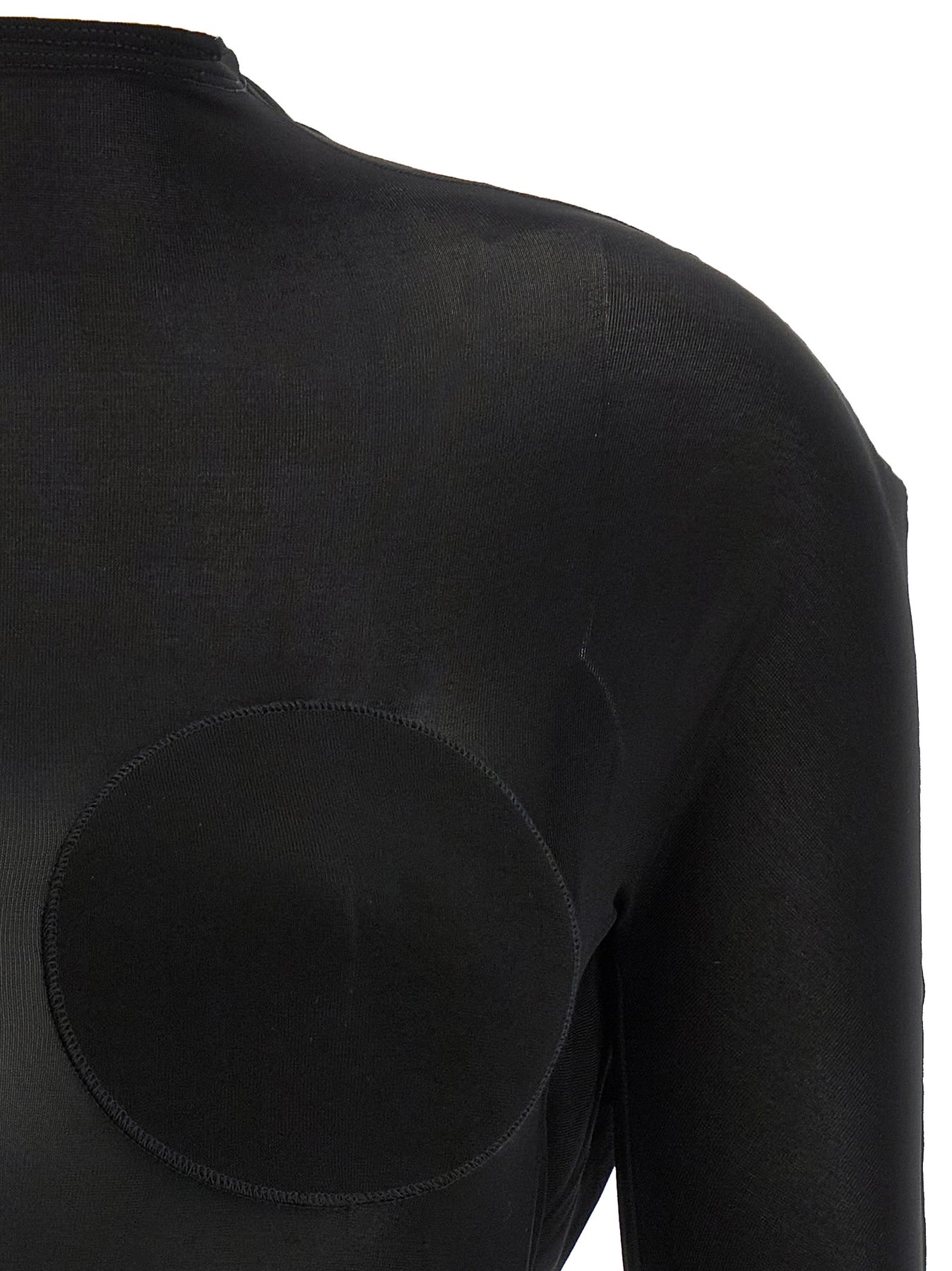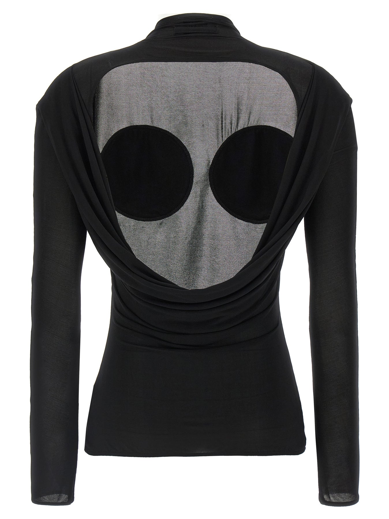 Semi-transparent lightweight jersey sweater, front cone volume detail, back neckline, long sleeves.