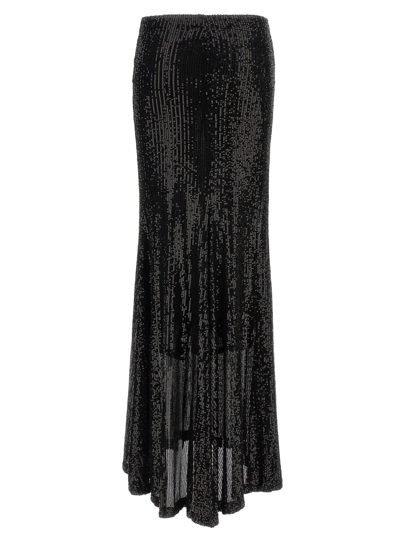 'Maria Cristina' maxi sequin skirt, elastic waistband, flared hem.