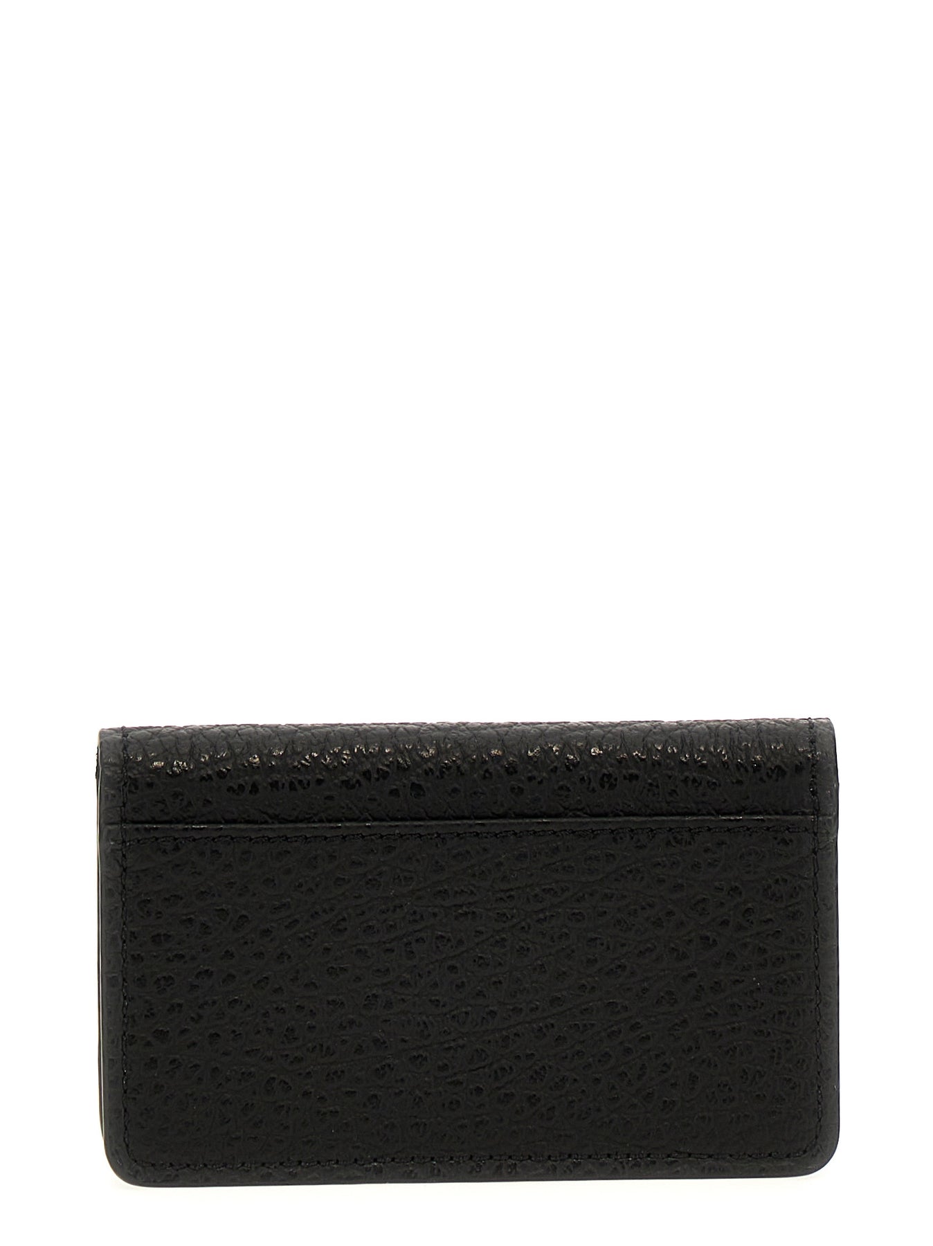 Embossed leather 'Four Stitches' card holder with stitching logo.