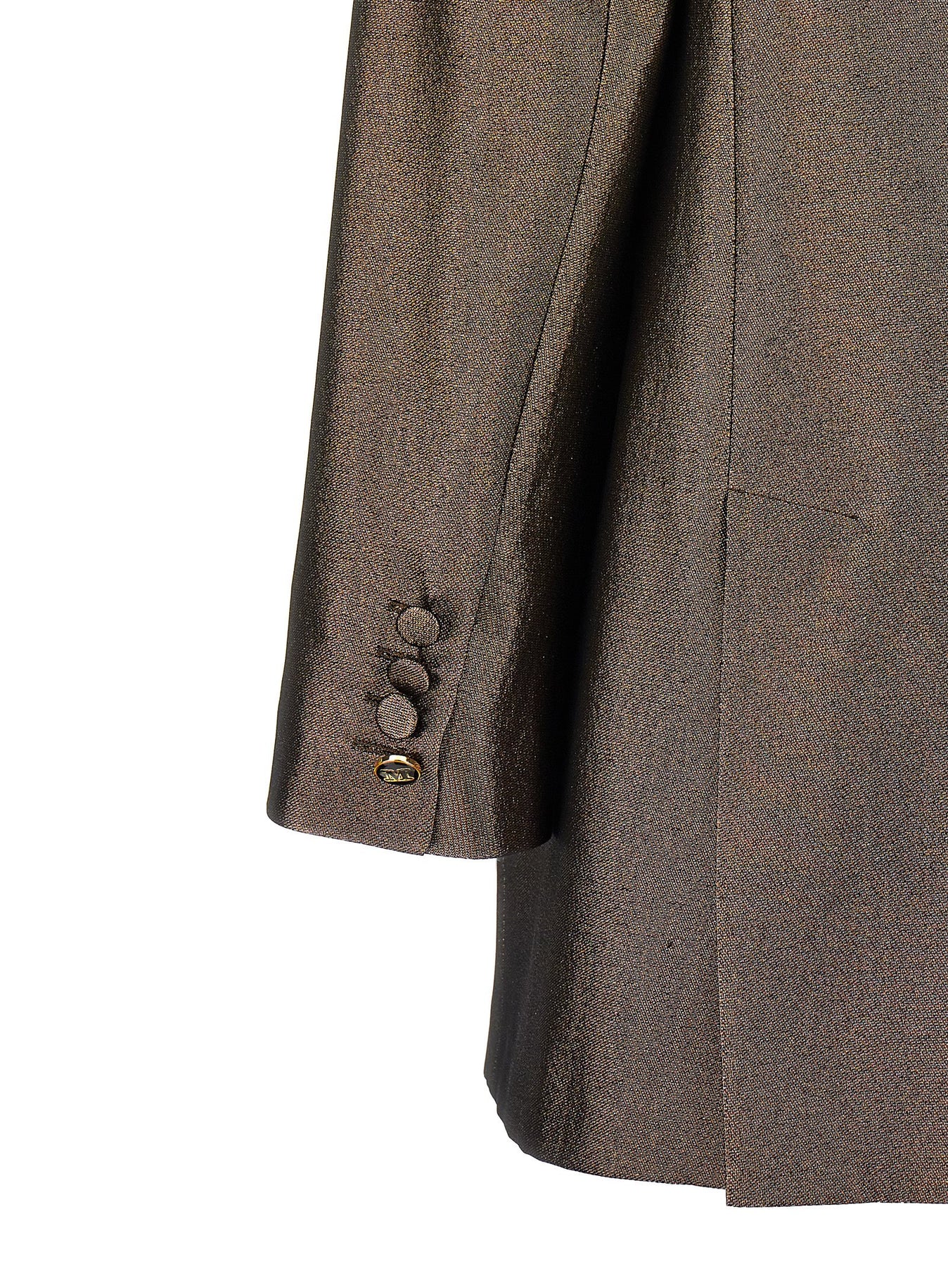 'Edro' lamé blazer jacket in brown silk charmeuse, double-breasted button closure, peak lapels, pockets, back vents, long sleeves.