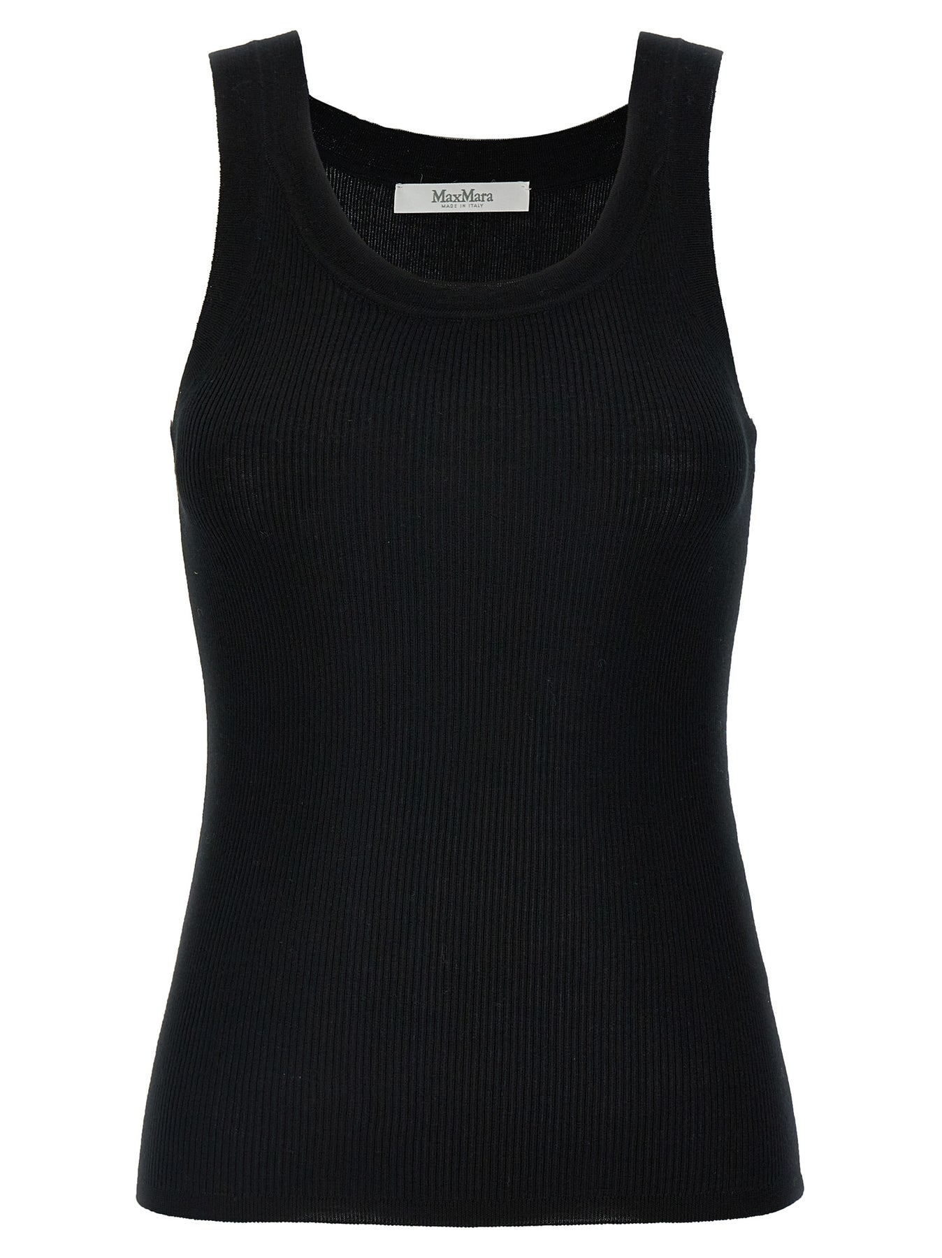 'Eliadi' top in stretch ribbed wool yarn with round neckline.