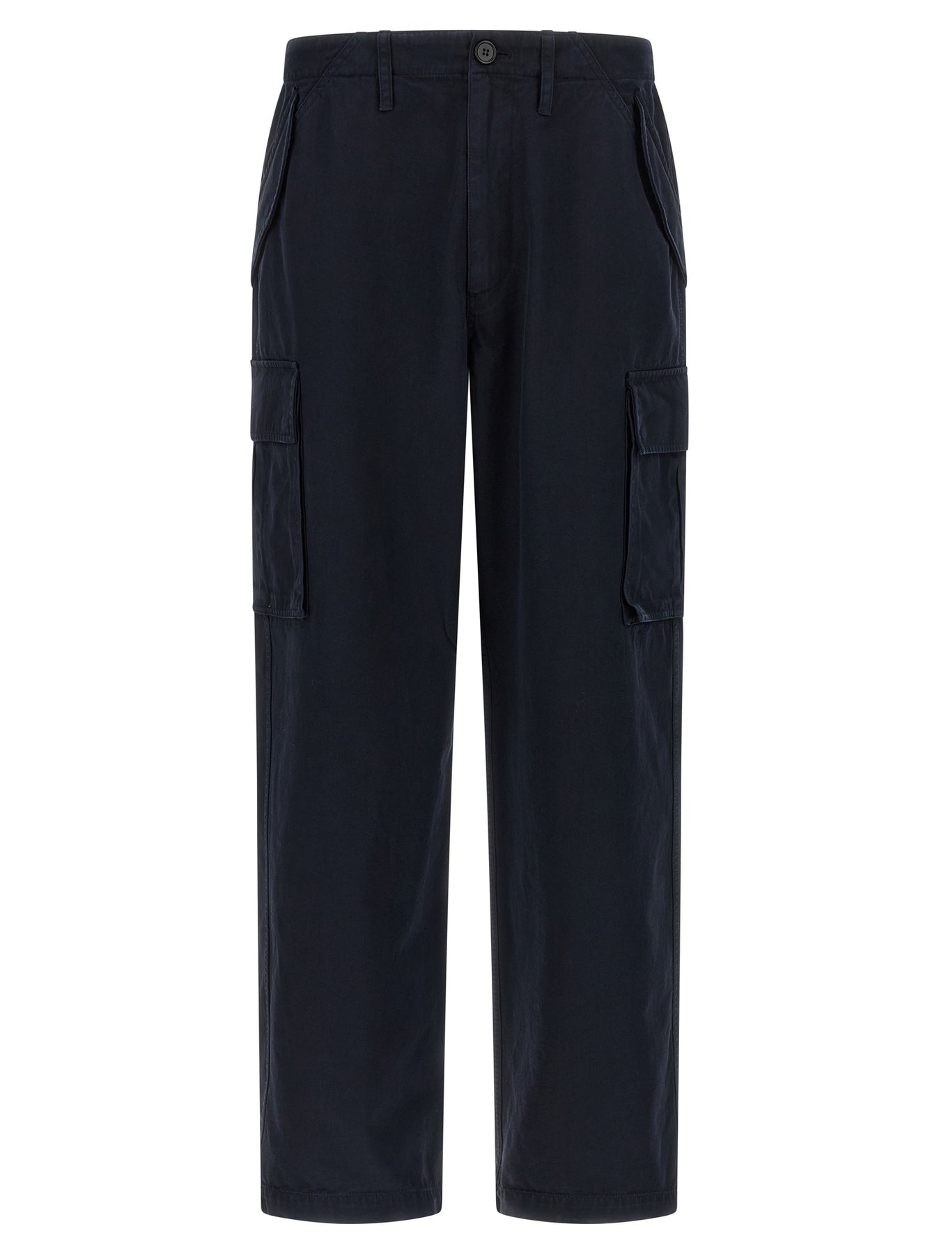 Cyrus' heavy cotton cargo pants with side pockets, wide straight leg, adjustable side straps in Burberry Check fabric, front zip and button closure, pockets.