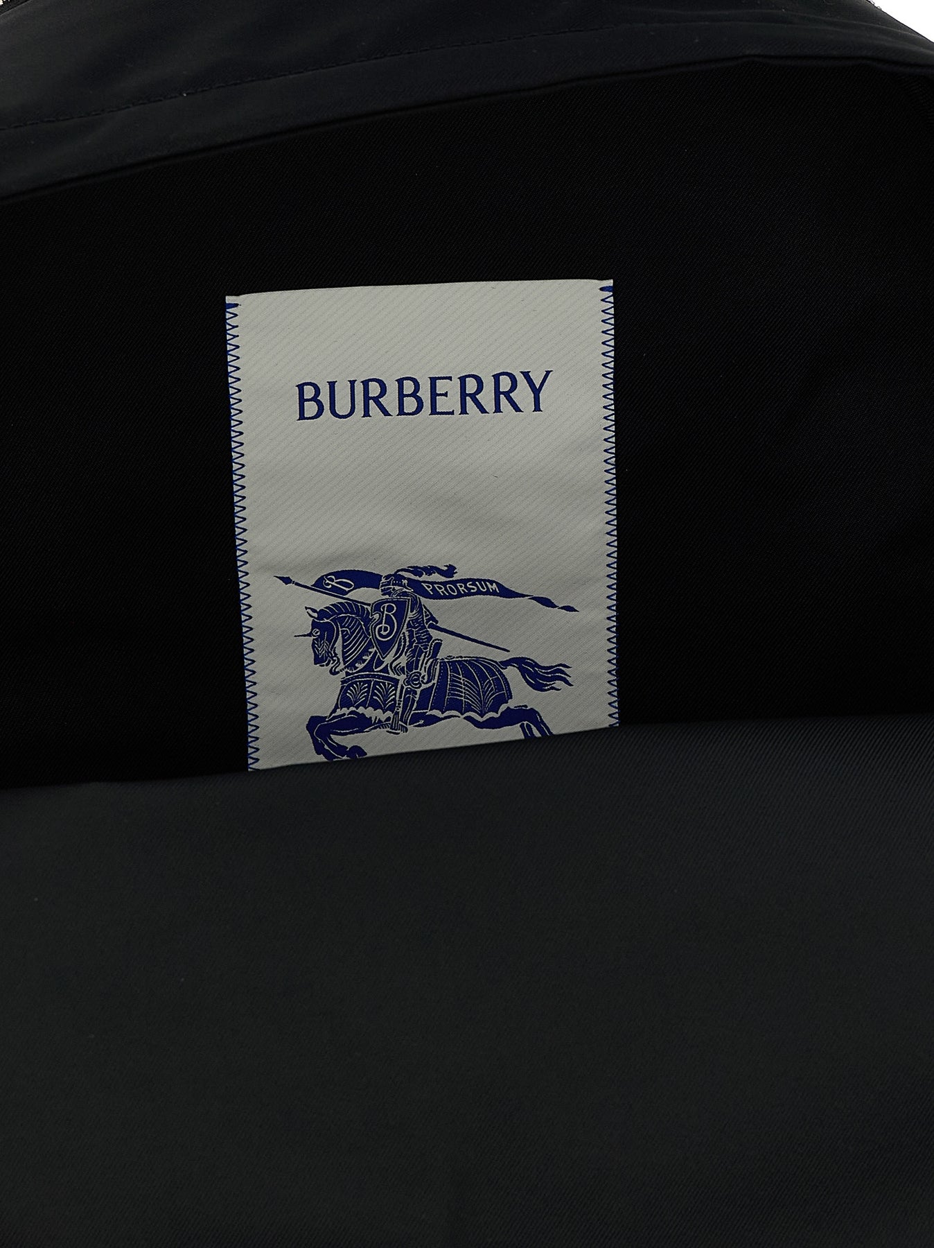 'Orkney' nylon backpack, front pocket with 'Equestrian Knight Design' woven in fil coupé with reflective yarn and zip, fixed handle, top zip closure, adjustable shoulder straps, mesh backrest with Burberry Check pattern.