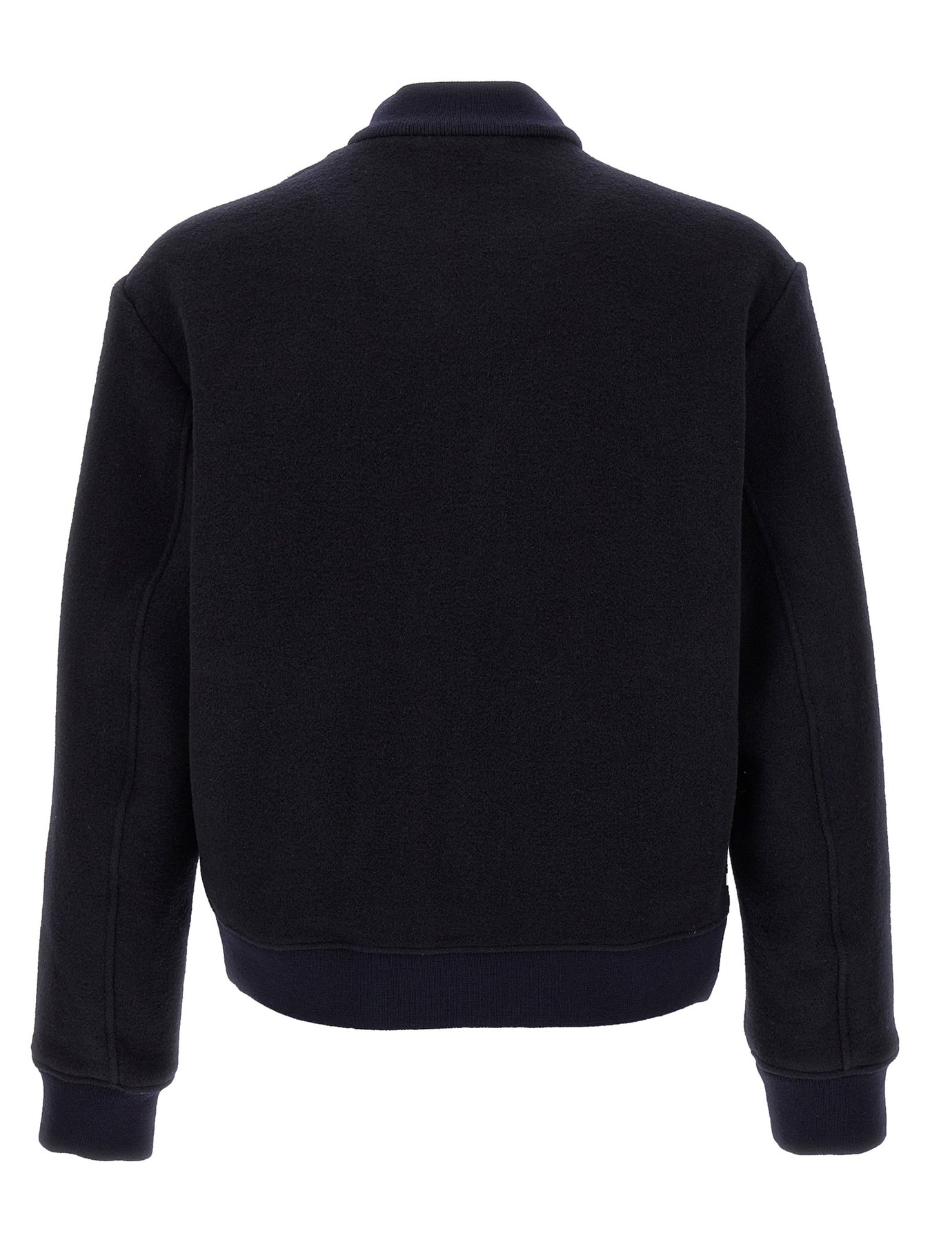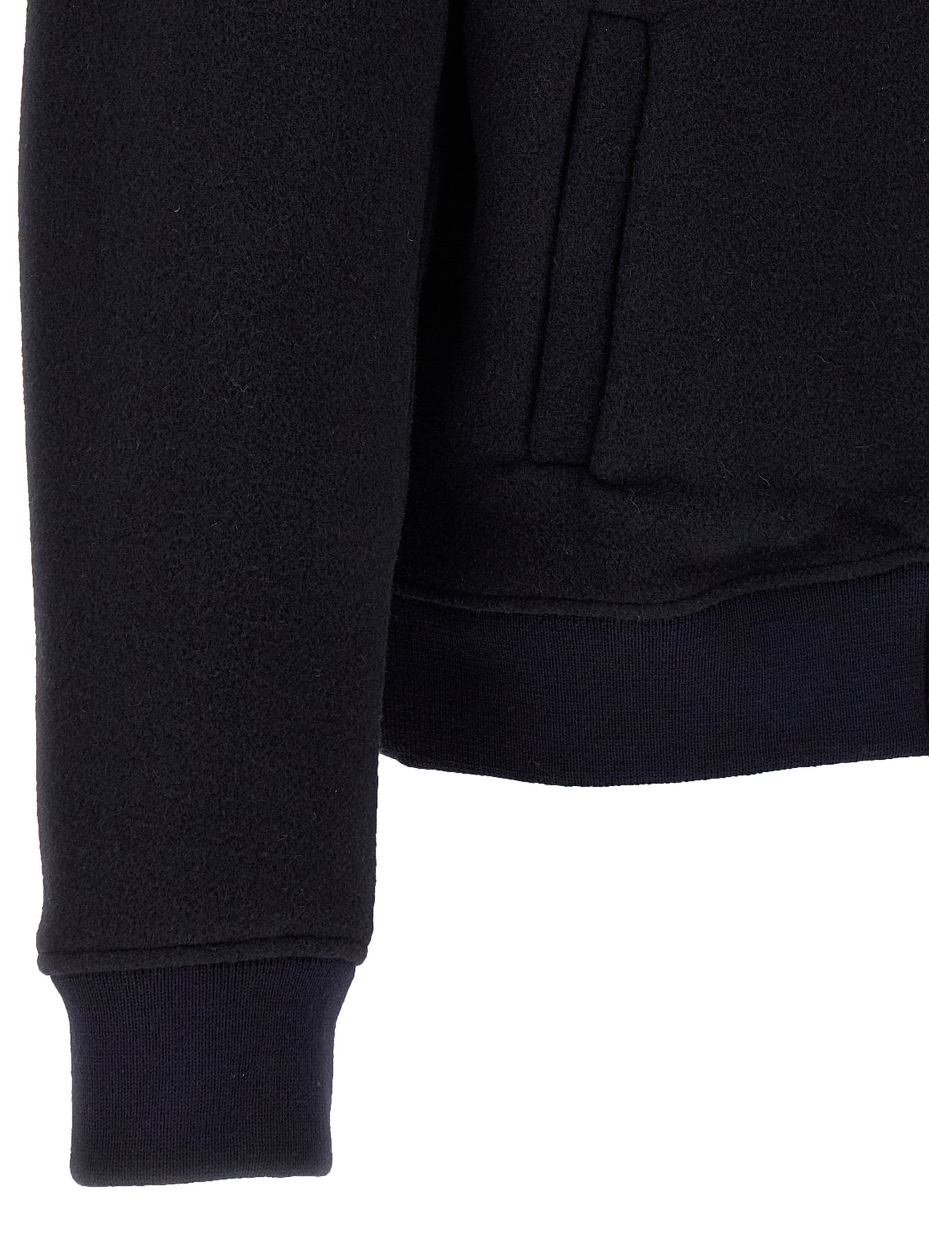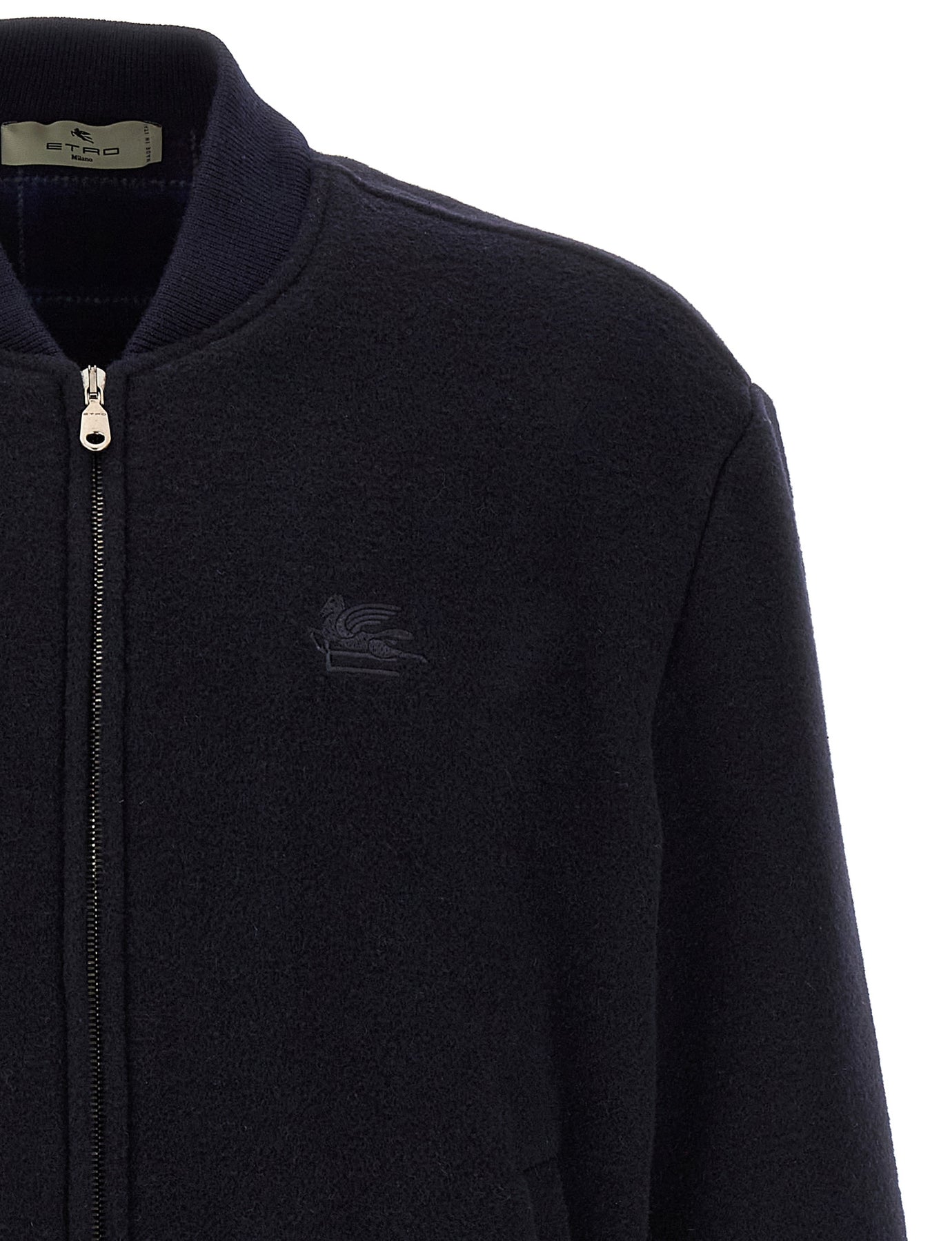 Wool bomber jacket with front pegasus embroidery, zip closure, side pockets, ribbed knit collar and cuffs.