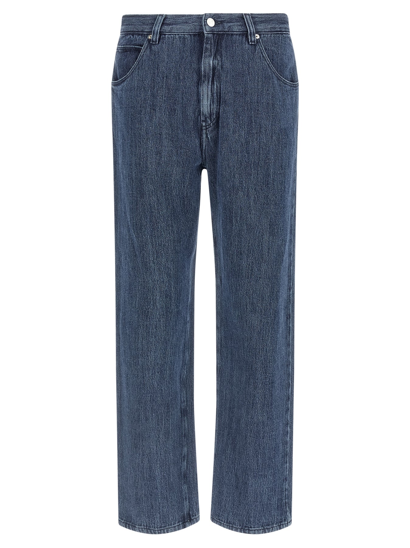 'Warkworth' jeans in light cotton and linen blend, regular waist, straight leg, front zip and button closure, five pockets, back logo tag.