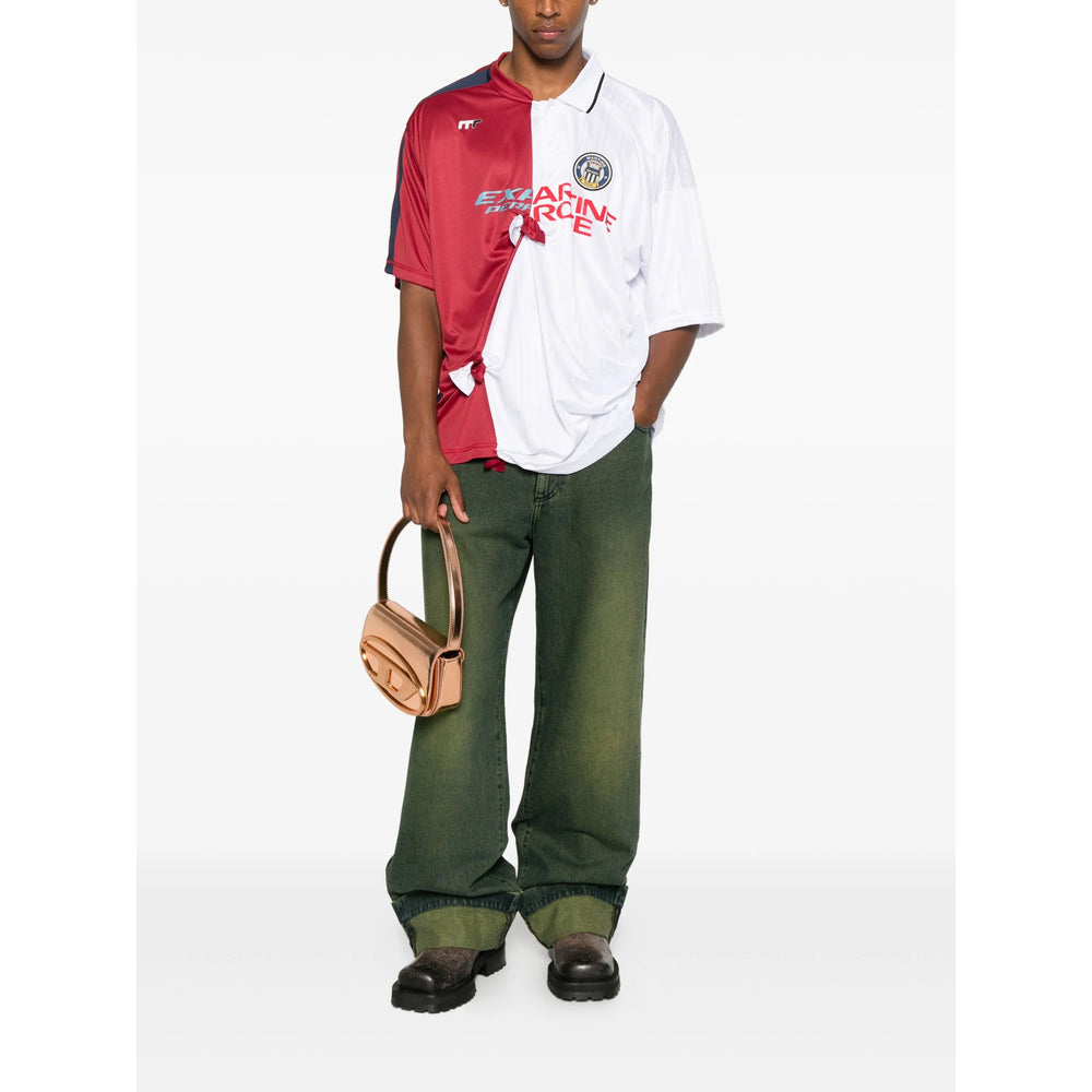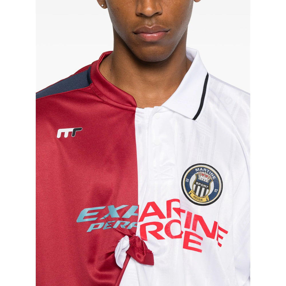 white colour-block panelled design logo print crew neck short sleeves knot detailing asymmetric hem