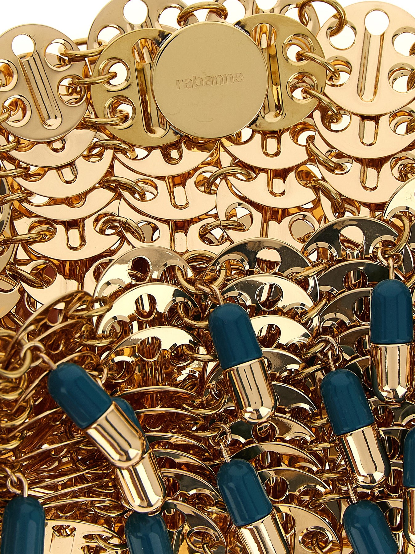 '1969 Nano Pils' shoulder bag in metal mesh and charms, double sliding handle, magnetic closure.