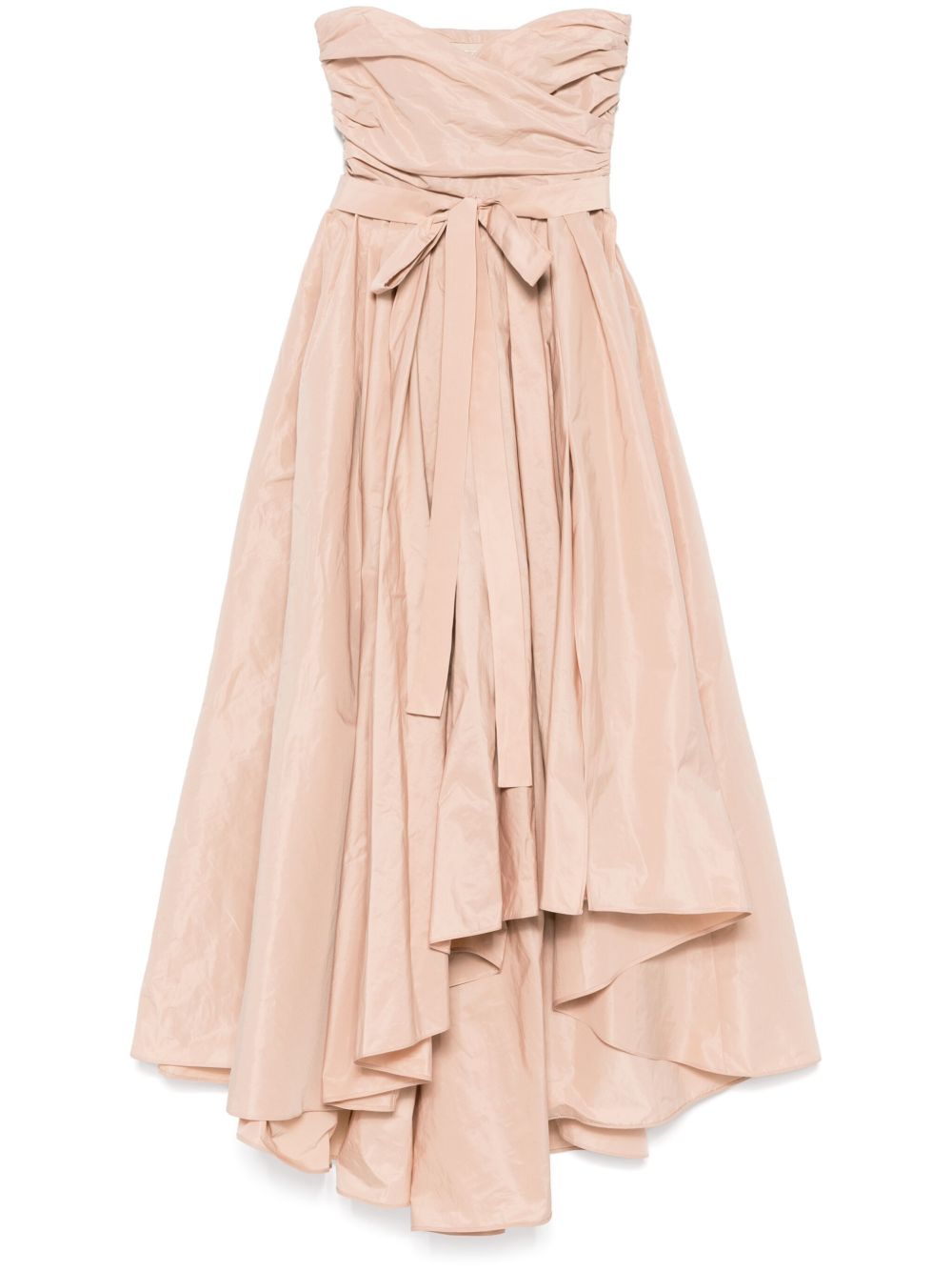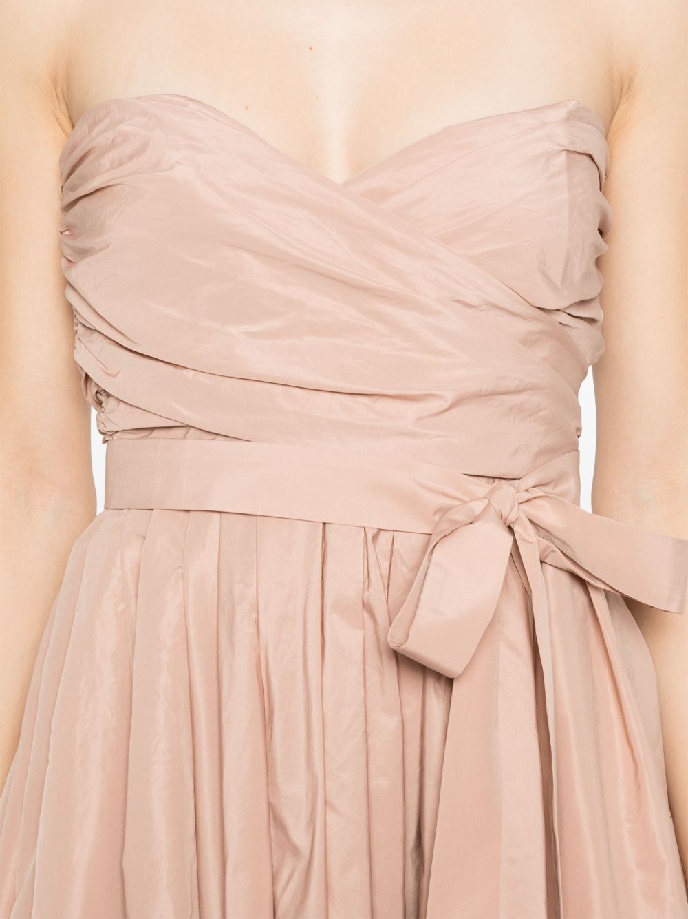 salmon pink concealed side zip fastening detachable belt crossover neck strapless