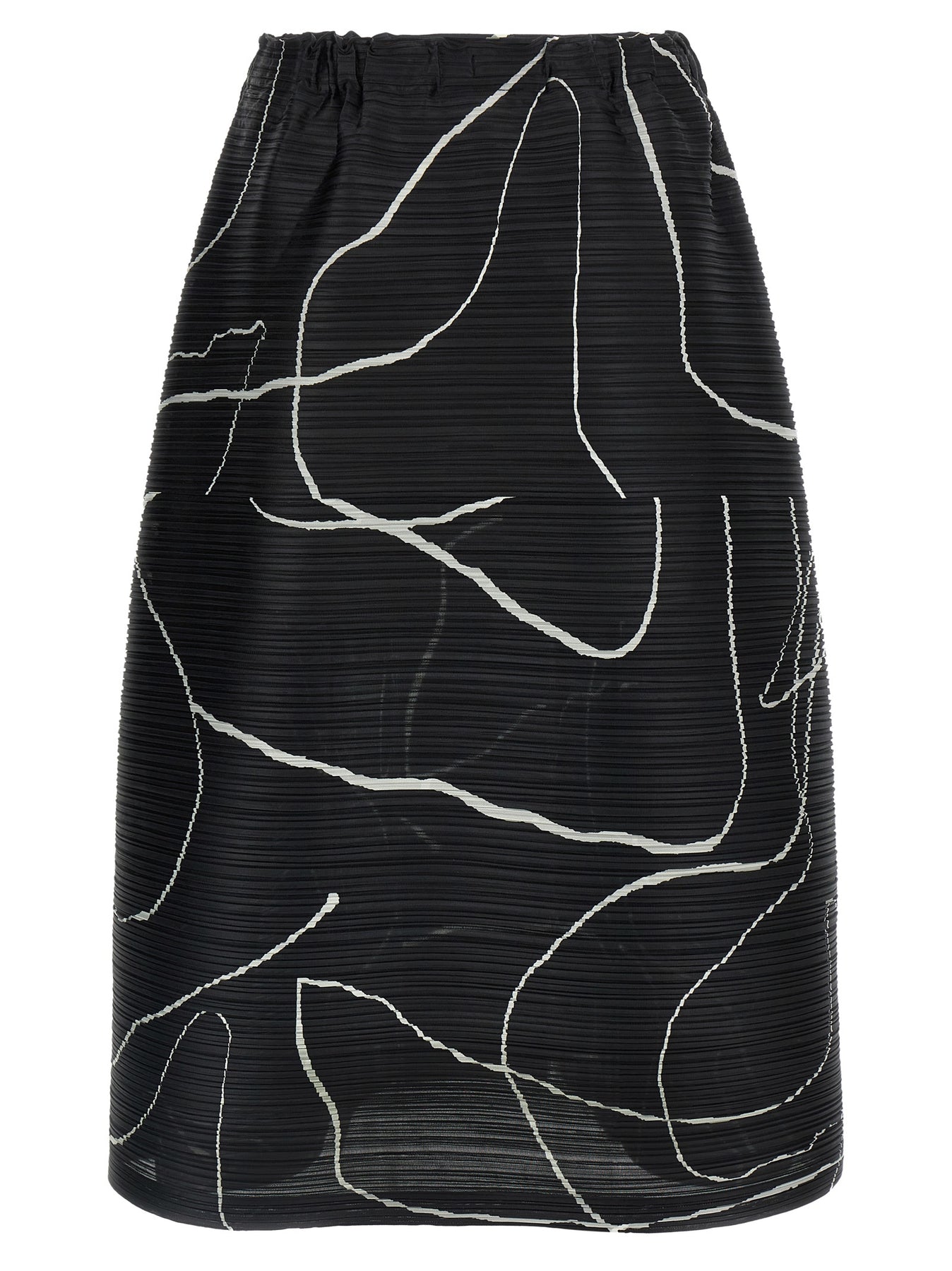'Pause' midi skirt in horizontal pleated fabric with trapezoid silhouette, elastic waistband.