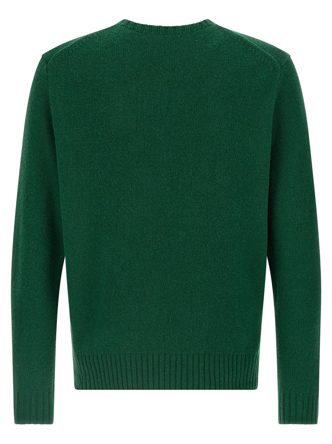 Polo Bear' wool sweater with front intarsia and patchwork fabric details, crew neck, long cuffed sleeves.