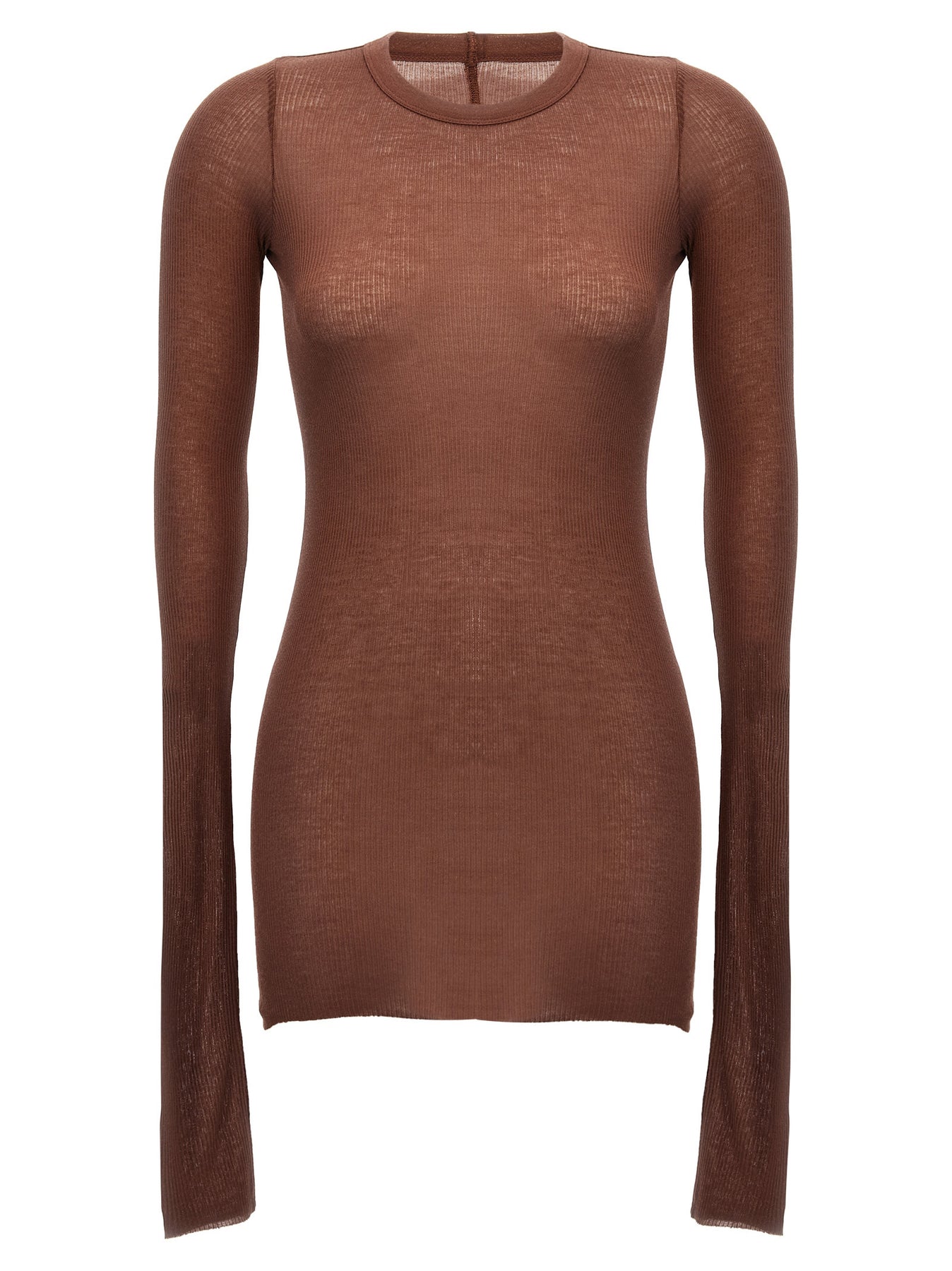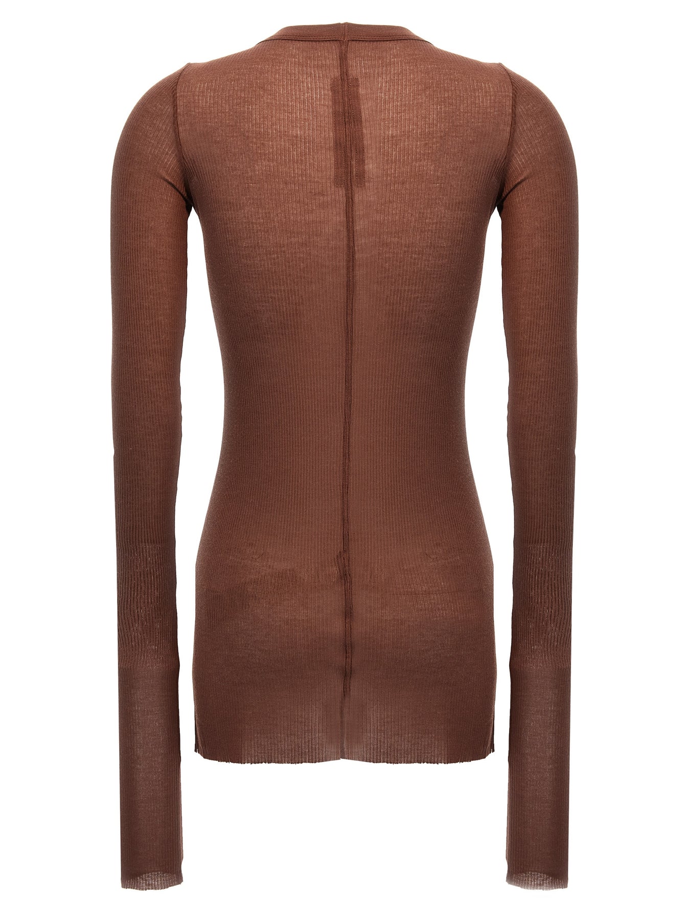'Rib Ls T' ribbed viscose and silk t-shirt, crew neck, long sleeves, raw cut hem.