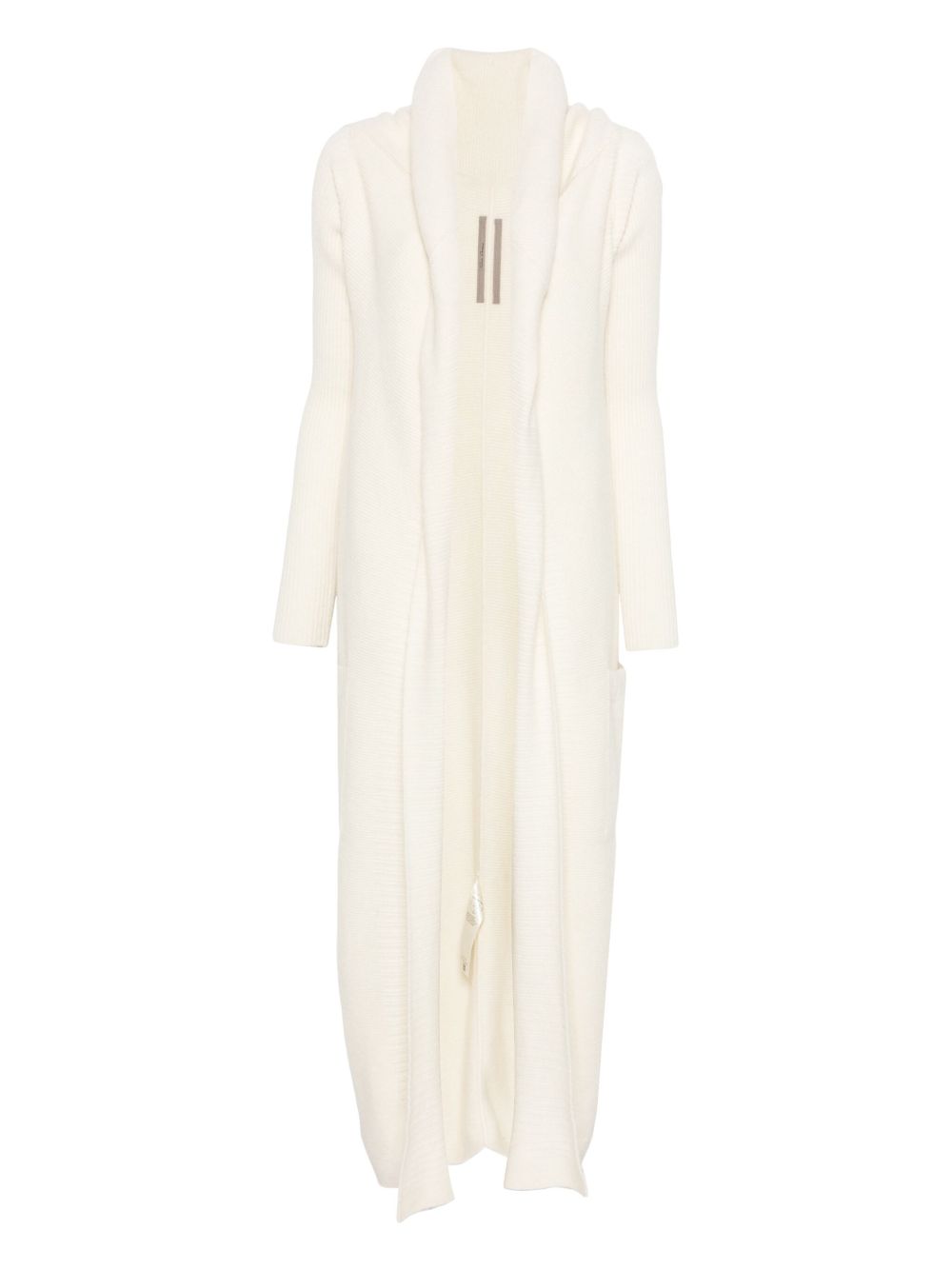 white ribbed knit shawl collar open front long sleeves long length