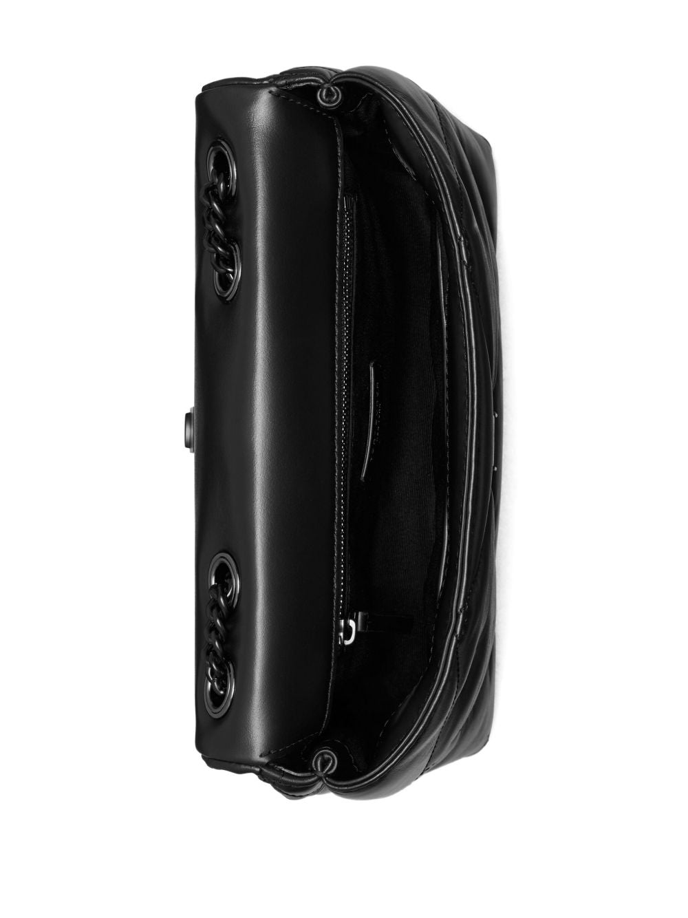 black diamond quilted design embossed logo detail chain strap flap closure